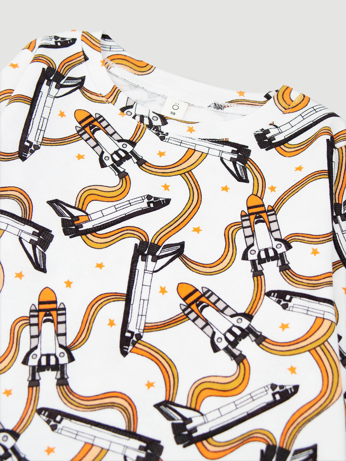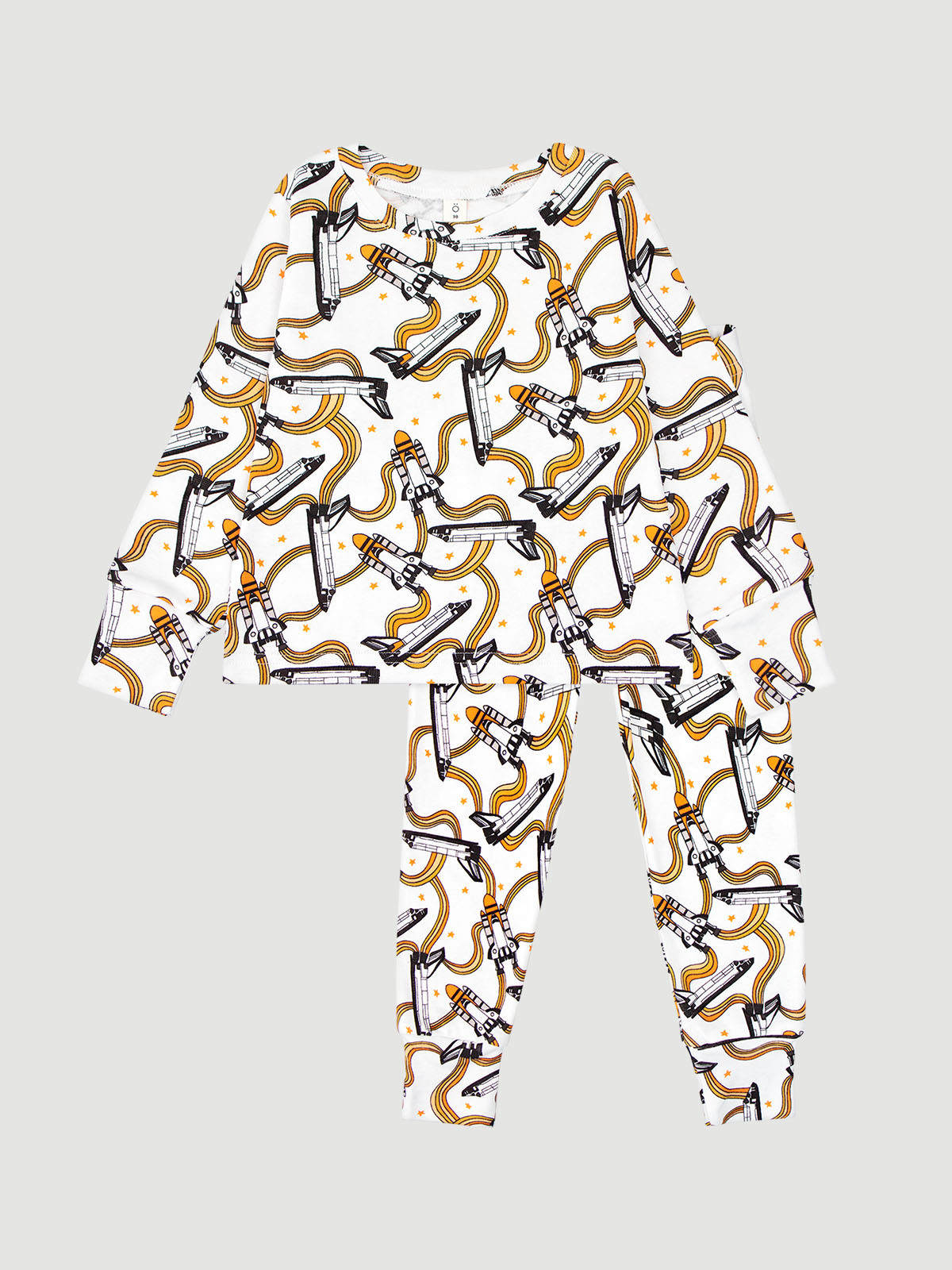 Пижама Mjölk [мьёльк] выполнена в яркой расцветке, подойдёт мальчикам и девочкам, подарит нарядный и запоминающийся образ. Штанишки на резинке не сползают и не сдавливают животик. Длинный рукав кофточки обеспечивает комфорт для ручек. Подойдет для носки круглый год как пижама или самостоятельная одежда.