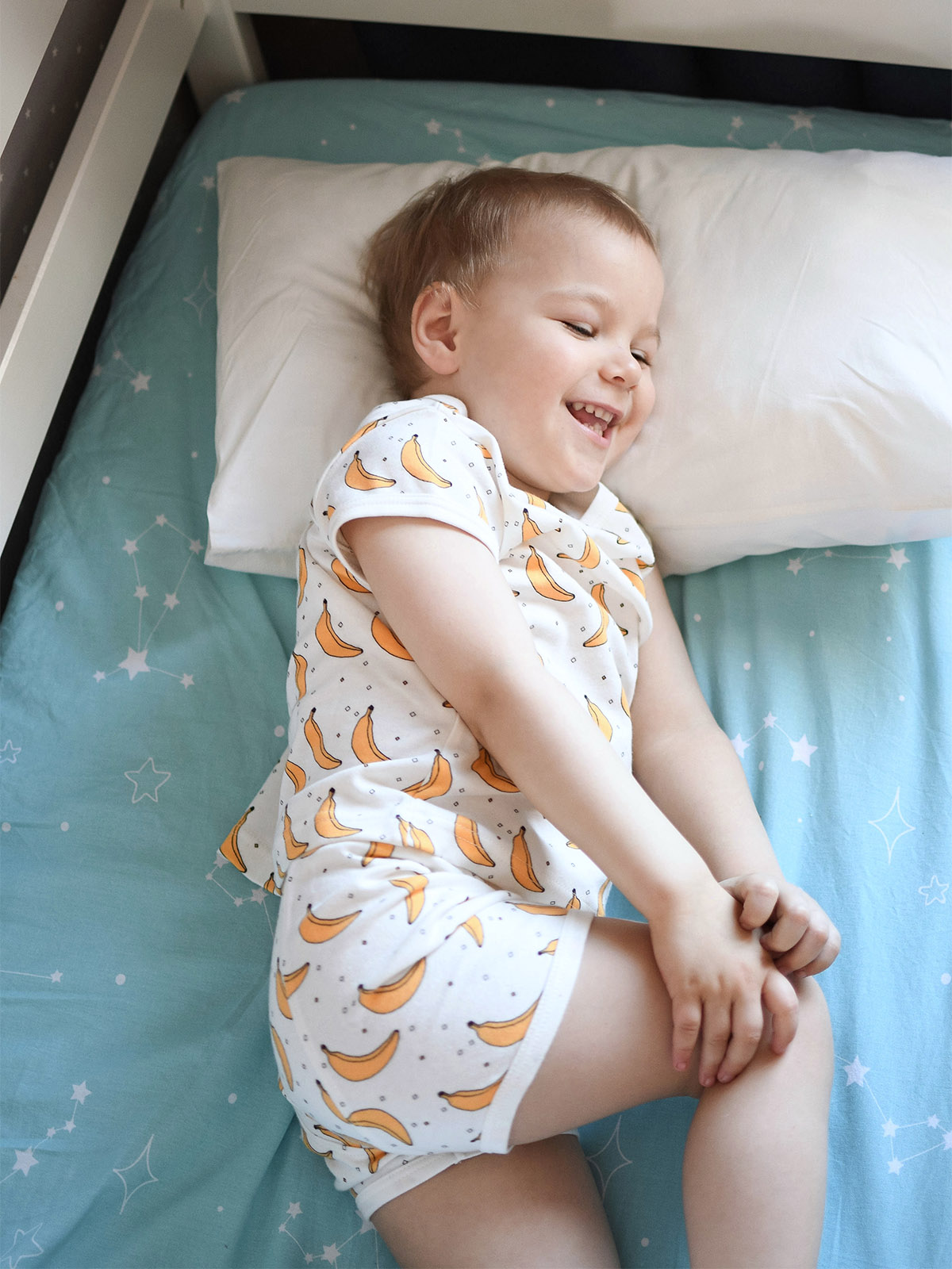 Пижама Mjölk [мьёльк] — это кофточка с коротким рукавом и шортиками. Это идеальная одежда для сна и отдыха, которая обеспечивает комфорт и не сковывает движений. Благодаря красочным принтам можно использовать как одежду для дома.