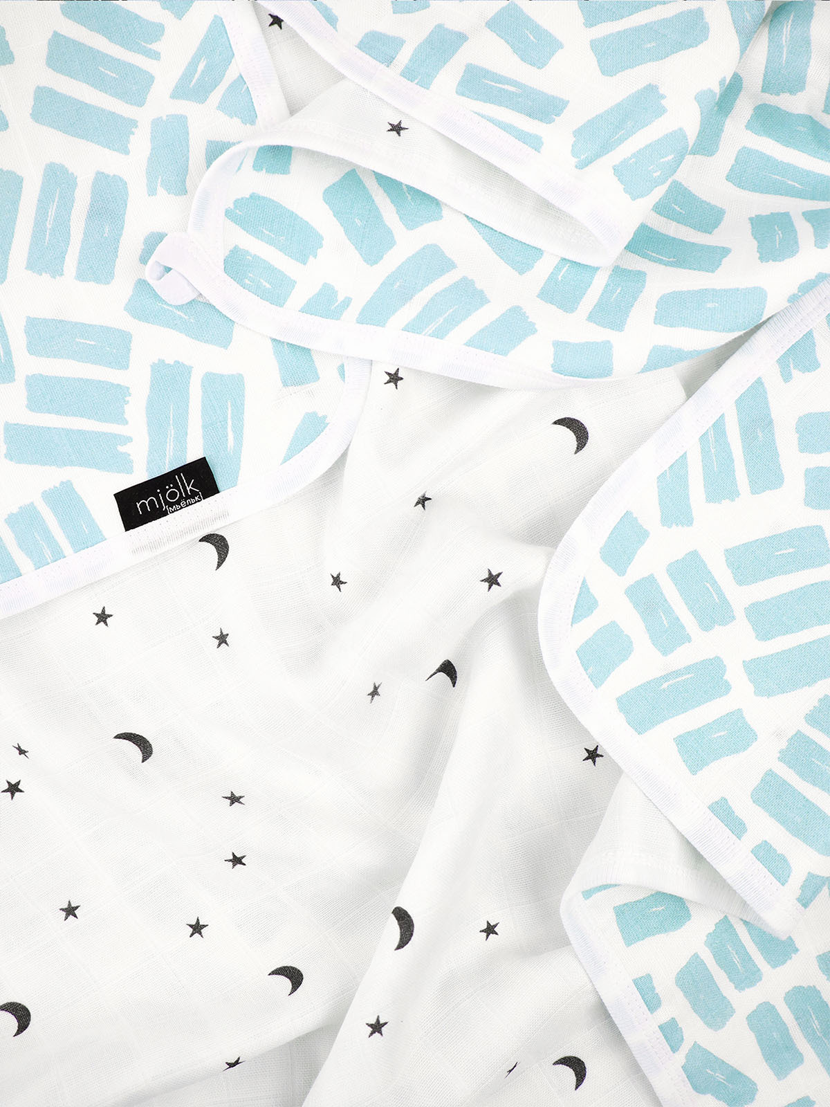 Мы изменили цвет принта для муслина Ночное небо с синего на черно-серый. Некоторое время при заказе вы можете получить как прошлый, так и новый вариант дизайна. Выбор расцветки при заказе невозможен.
