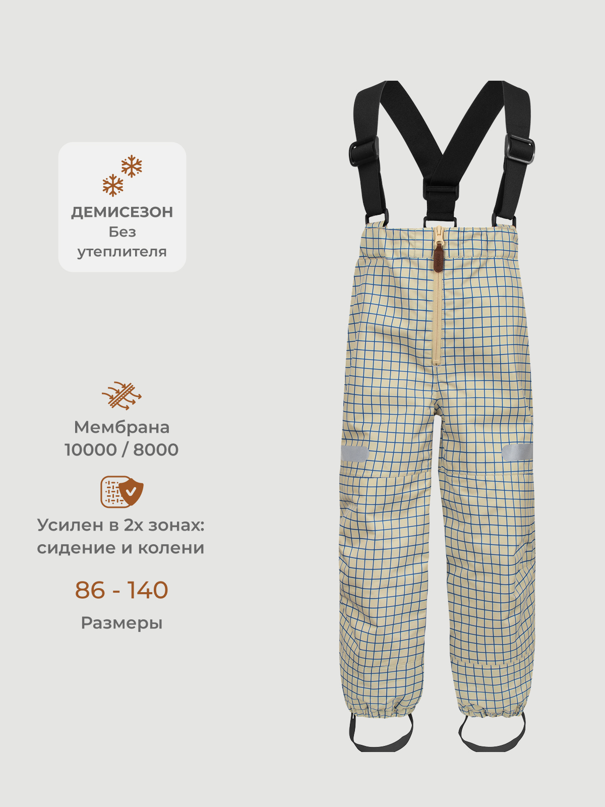 Демисезонные брюки Mjölk [мьёльк] Основные швы брюк проклеены, а сами они изготовлен из водо- и ветронепроницаемой, грязеотталкивающей мембраны. Усиленная задняя часть и область колен обеспечит дополнительную защиту во время активных игр. Гладкая подкладка и удобные резинки помогают комфортному надеванию верхней одежды. Используя изделия с мембраной, стоит придерживаться принципа многослойности: надевать на ребёнка первый слой (лонгсливы, легинсы, термобелье).