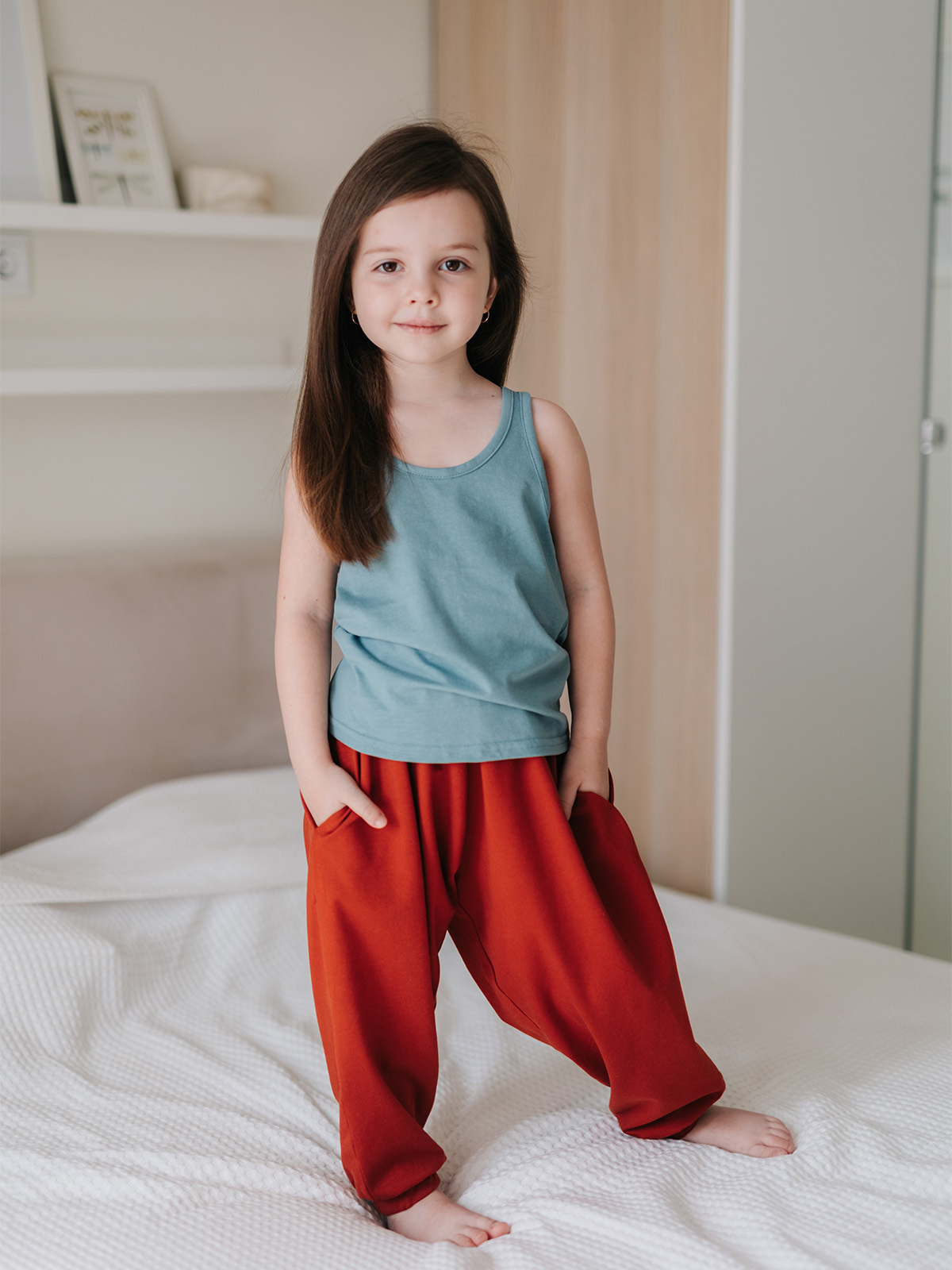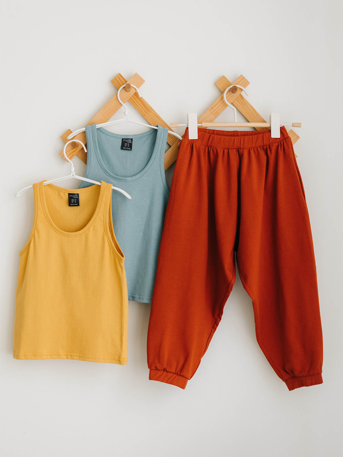 Широкие детские брюки подходят для повседневного использования дома, для сна, для походов в детский сад. Это базовые штанишки на лето для активных игр и прогулок. Пляжные штаны составят отличный комплект с футболками или майками mjolk.