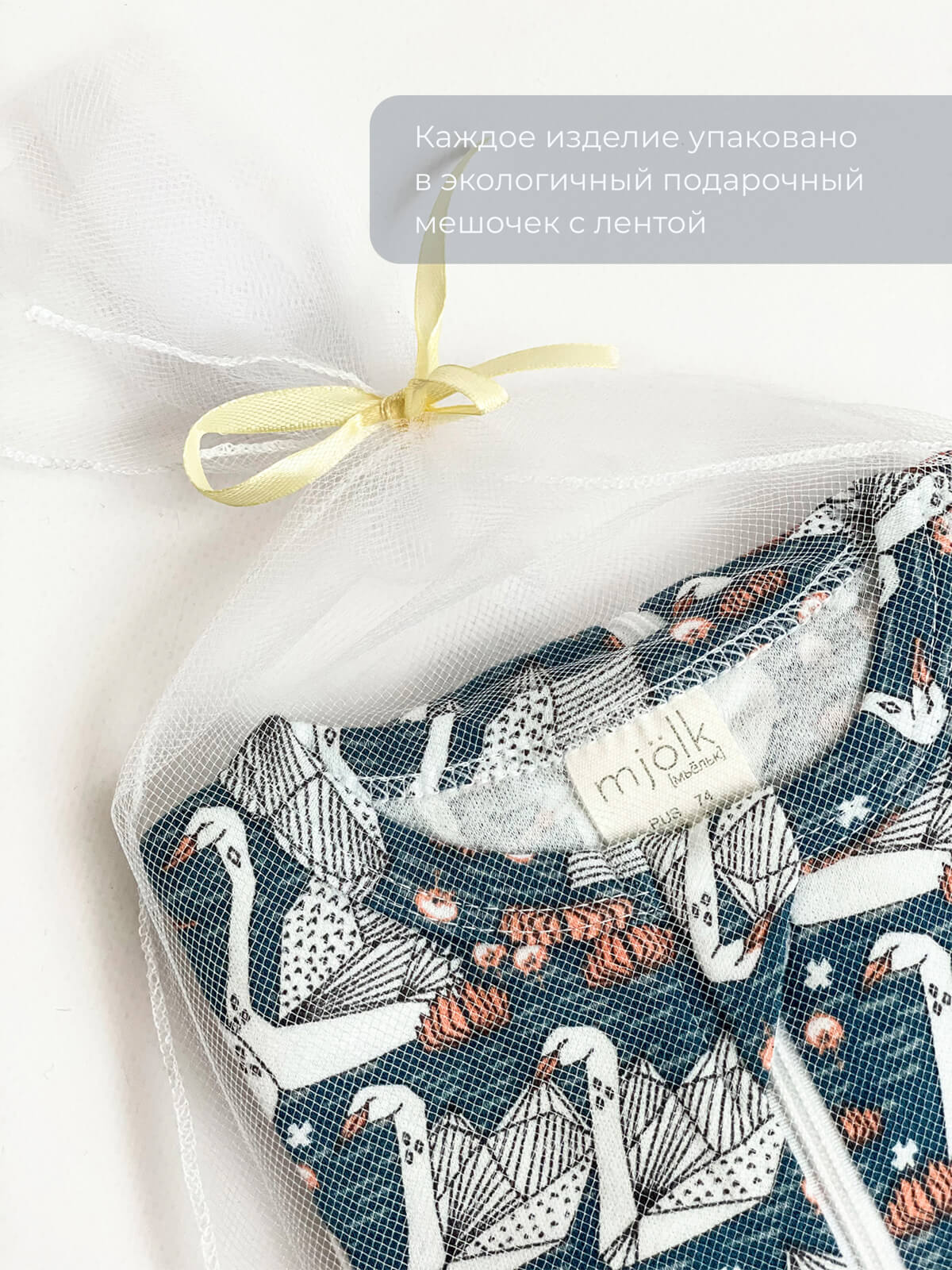 Шаровары упакованы в нежный фатиновый мешочек с лентой и станут отличным подарком любому, у кого в семье есть малыш.