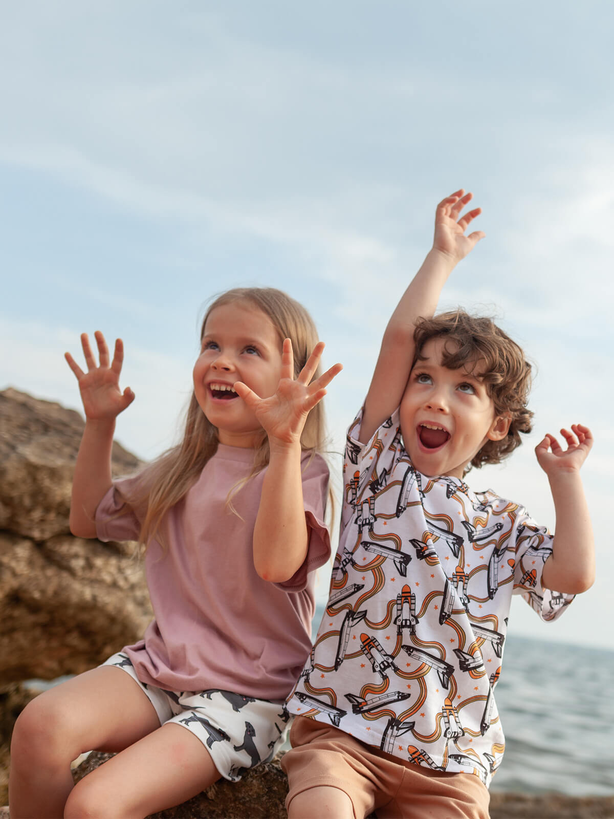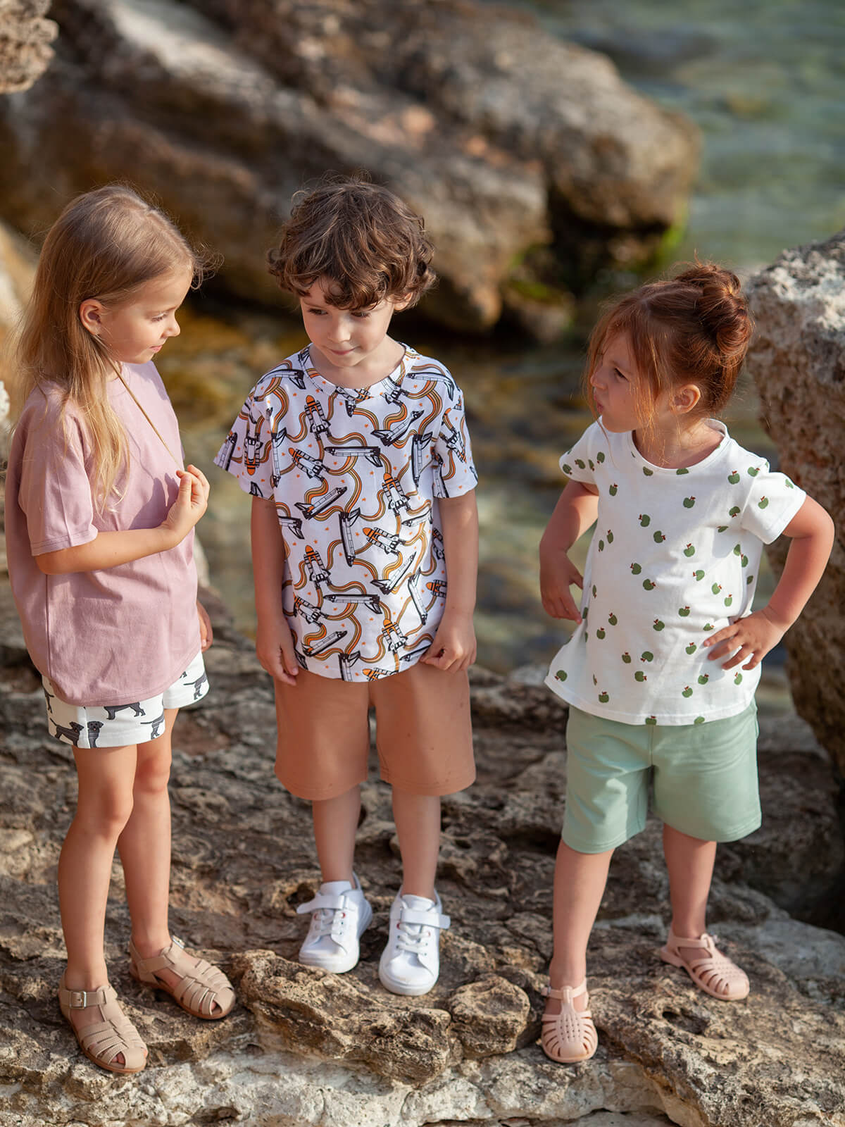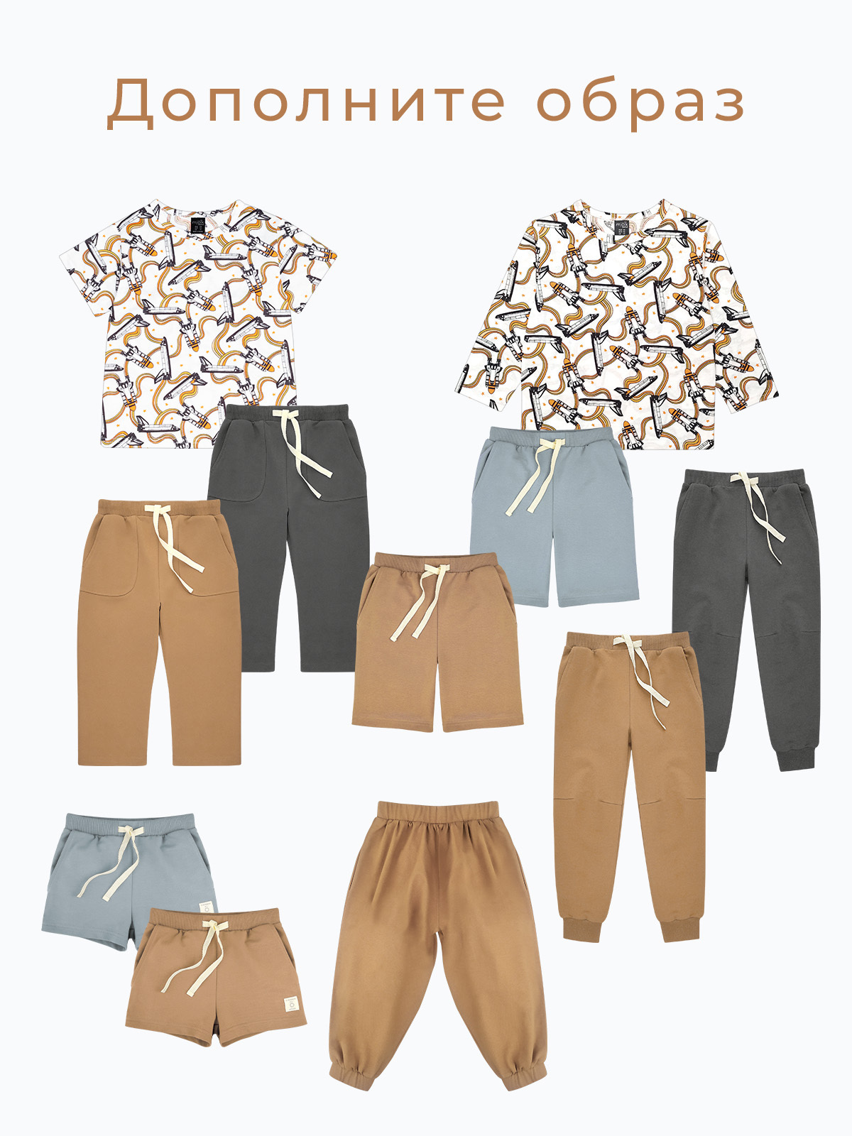 Благодаря стильному и универсальному дизайну, футболка для детей может быть как одеждой для дома, так и одеждой для сна, игр или спорта. Можно носить самостоятельно в тёплую погоду и под свитшот, свитер или худи — в прохладную. Выбирайте шорты для мальчиков и девочек от mjolk в комплект.