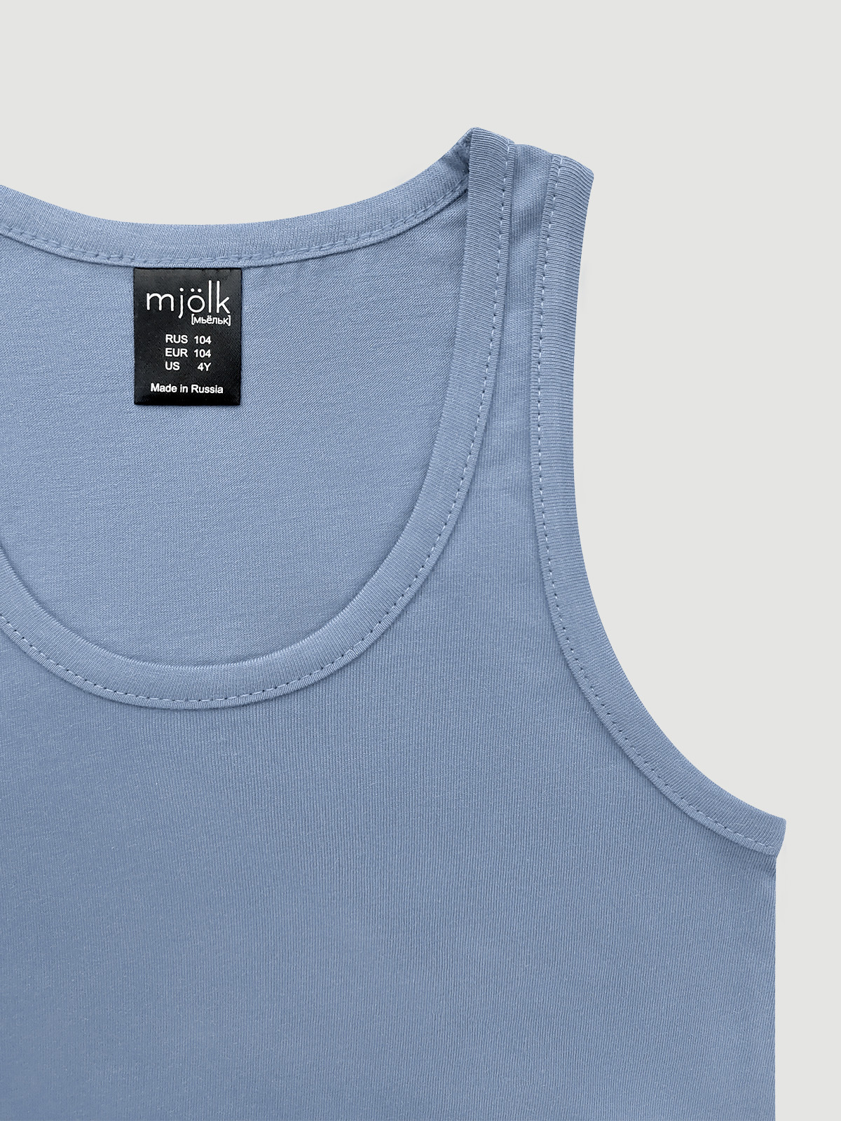 Детская майка для мальчиков и девочек Mjölk [мьёльк]. Классическая модель с широкими лямками и круглым вырезом не сковывает движений ребенка, легкая, приятная к телу. Приятный глазу цвет понравится с первого взгляда и дополнит любой гардероб.