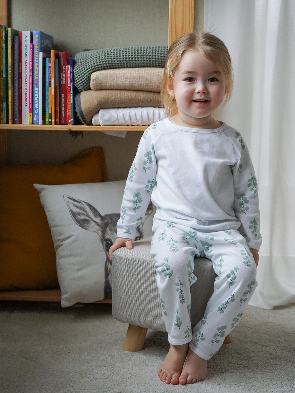 Пижама Mjölk [мьёльк] выполнена в яркой расцветке, подойдёт мальчикам и девочкам, подарит нарядный и запоминающийся образ. Штанишки на резинке не сползают и не сдавливают животик. Длинный рукав кофточки обеспечивает комфорт для ручек. Подойдет для носки круглый год как пижама или самостоятельная одежда.
