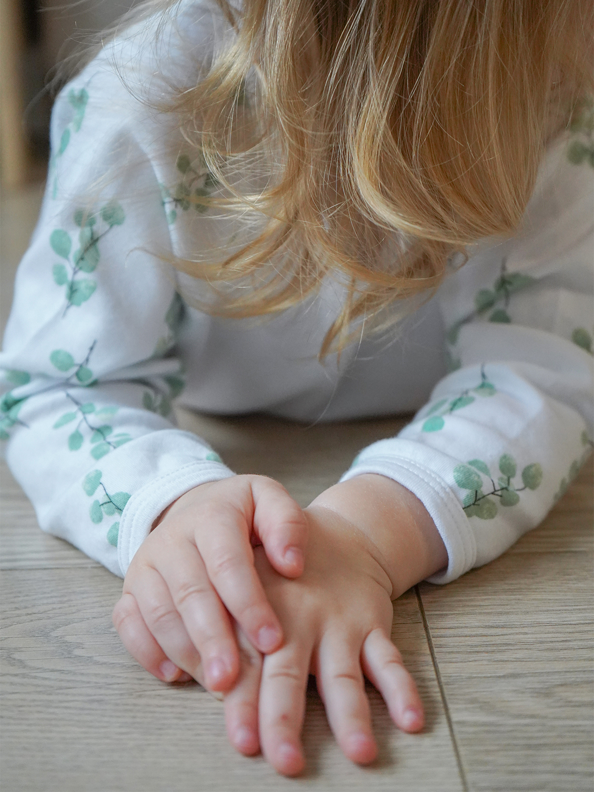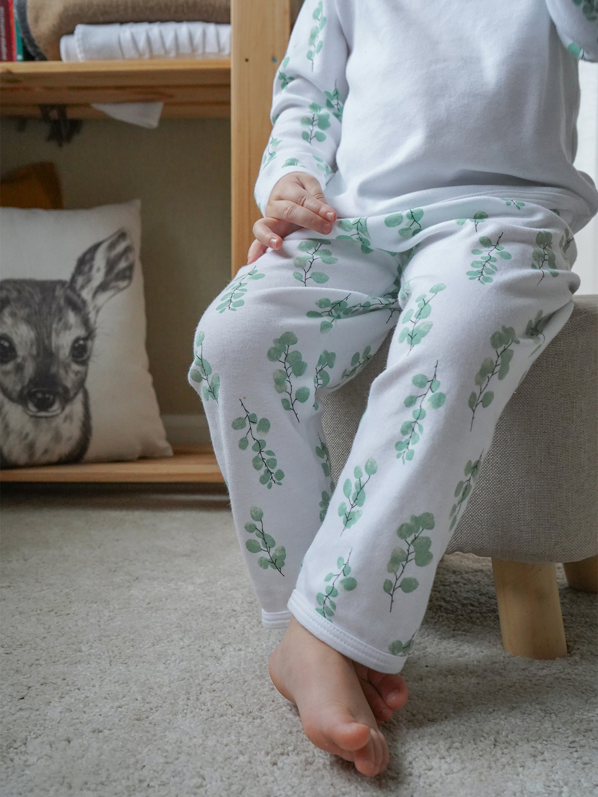 Пижама изготовлена из трикотажного хлопка под названием интерлок. Интерлок – это плотный трикотаж двойного плетения хлопчатобумажных нитей. Одежда из такого материала долго носится, хорошо сохраняет цвет и форму. Плюсы материала: