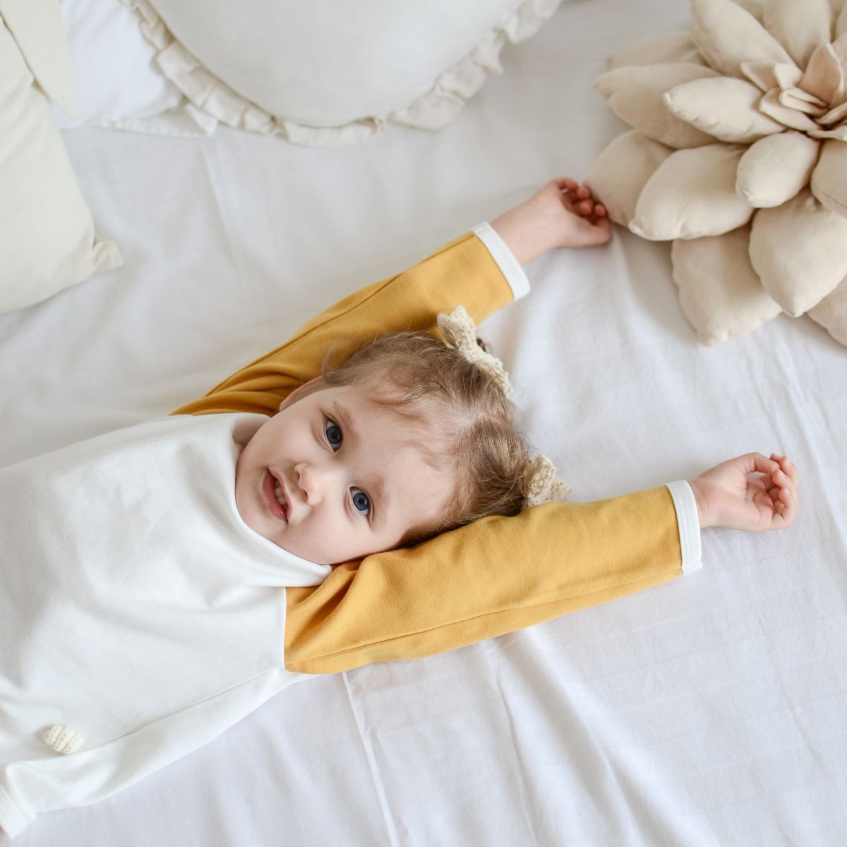 Материал - 100% хлопок, гипоаллергенный, нежный, хорошо пропускает воздух, не раздражает нежную кожу ребёнка.