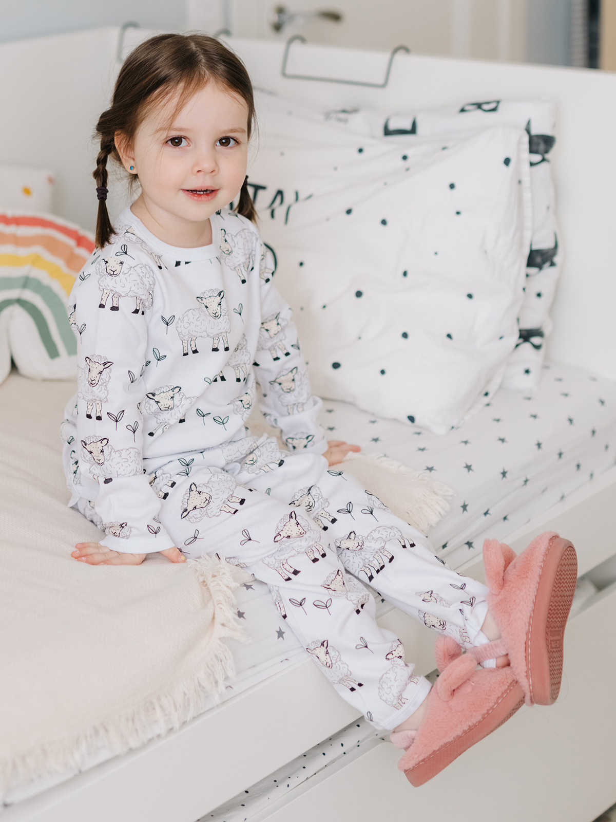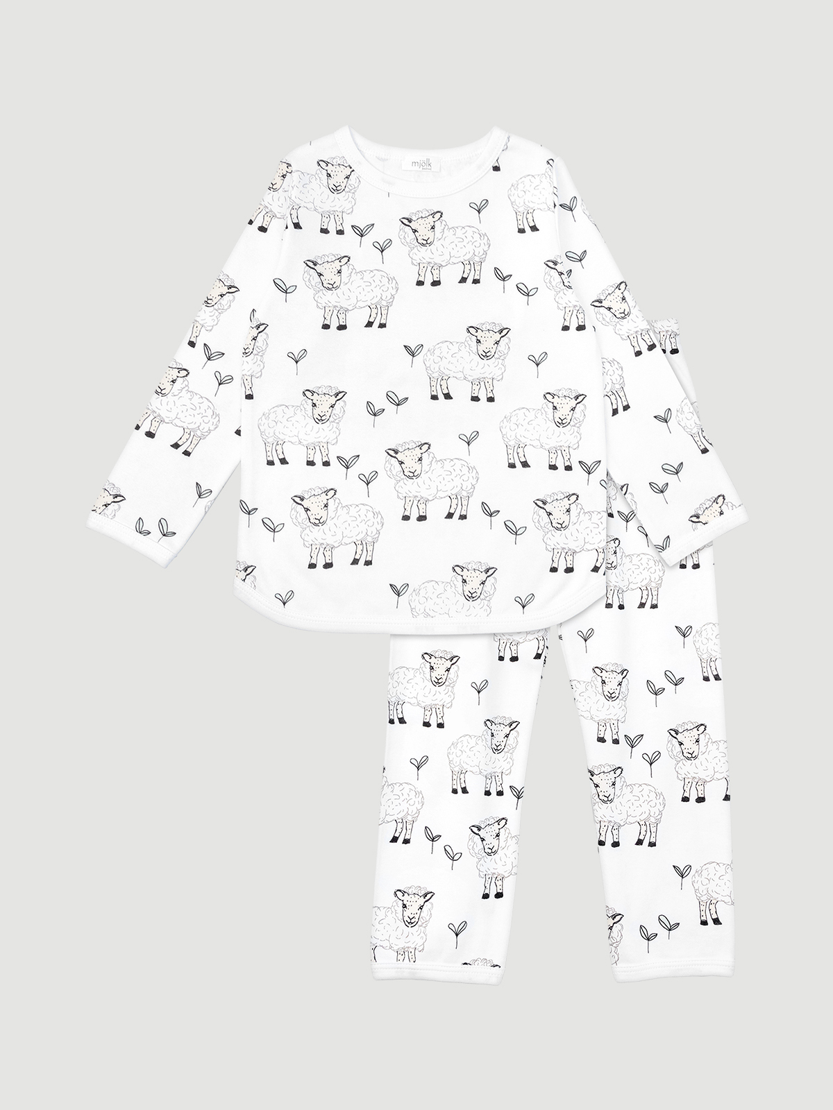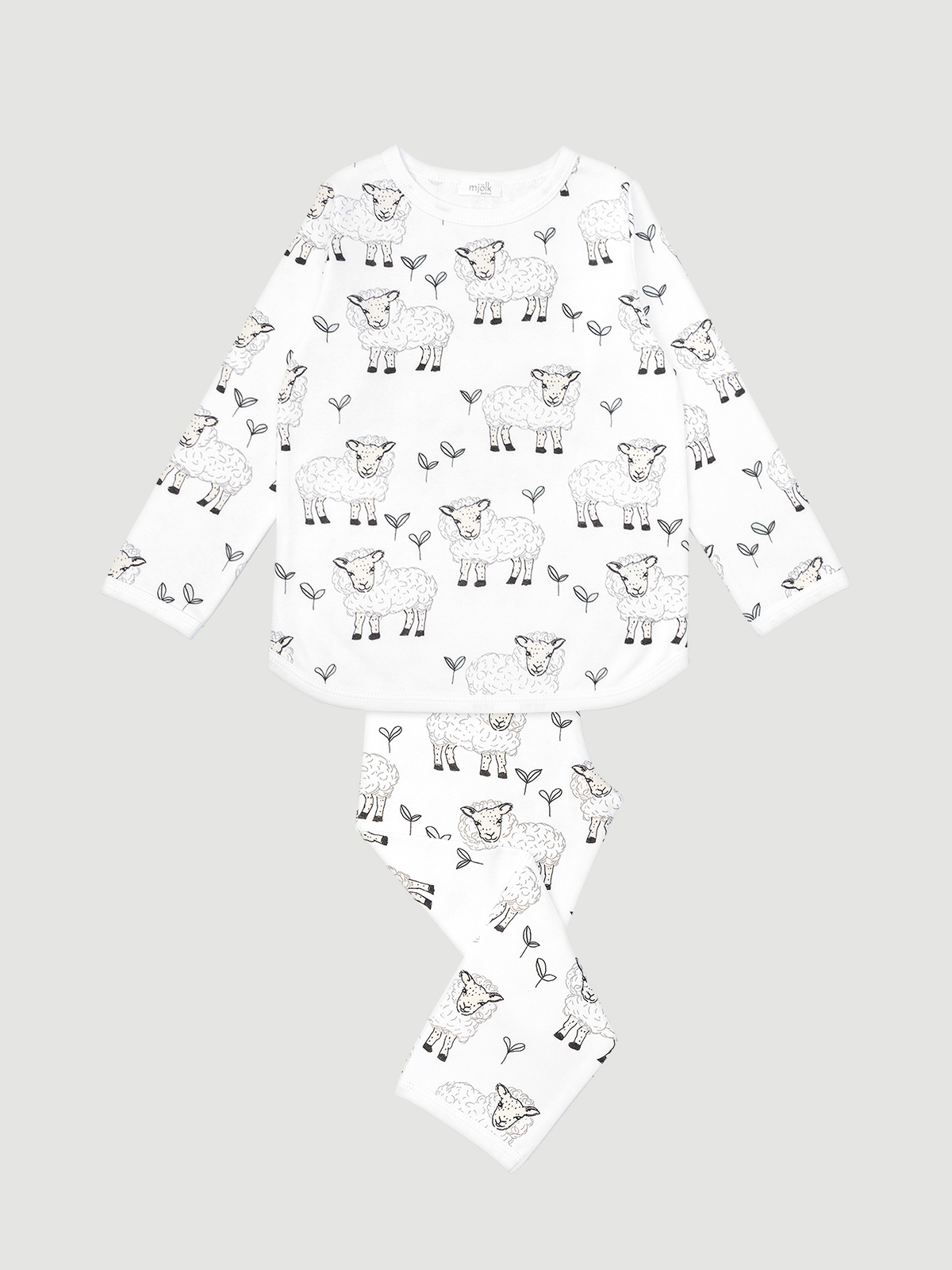 Пижама Mjölk [мьёльк] — это кофточка с длинным рукавом и штанишки. Это идеальная одежда для сна и отдыха, которая обеспечивает комфорт и не сковывает движений. Благодаря красочным принтам можно использовать как одежду для дома.