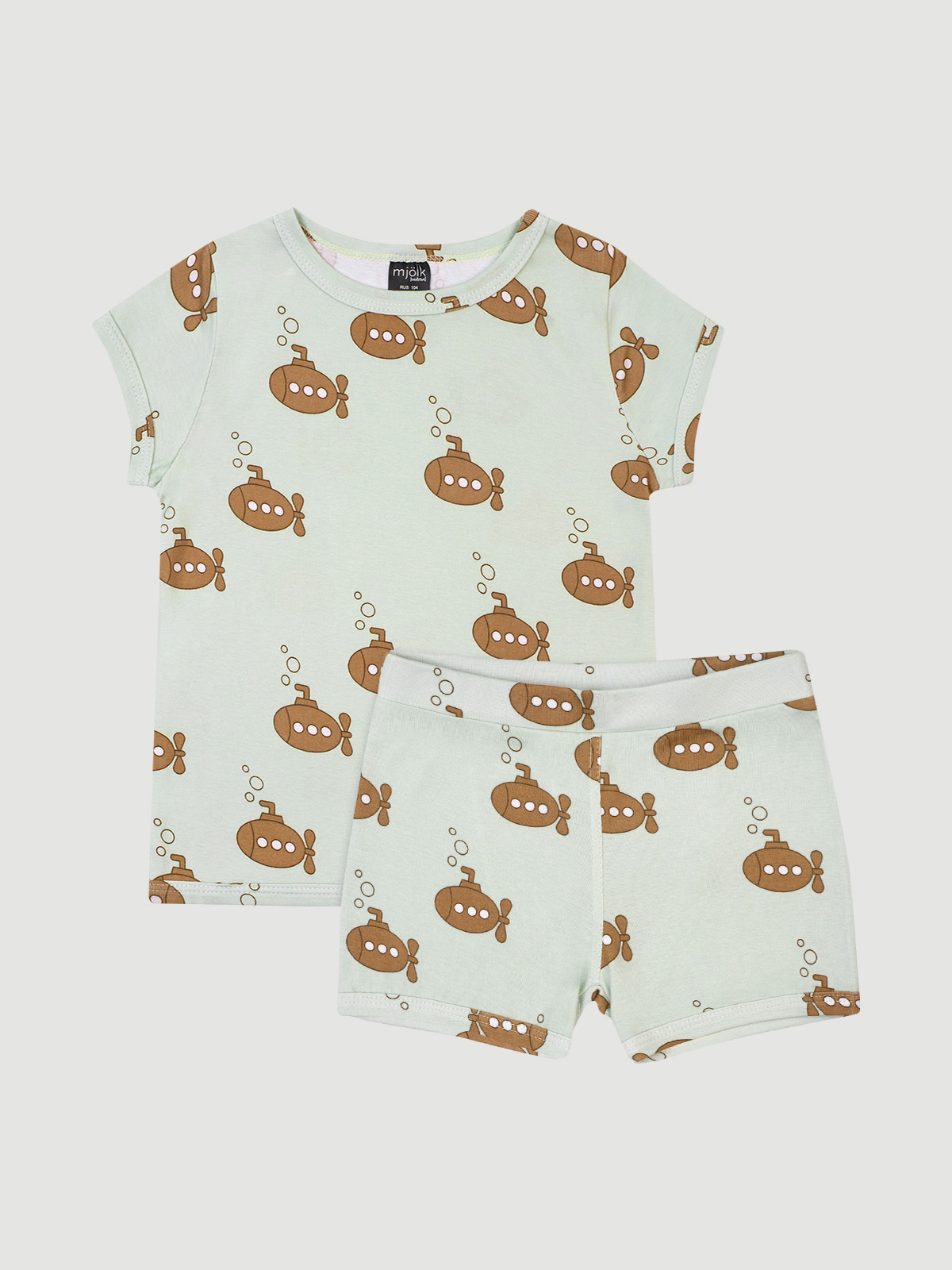 Пижама Mjölk [мьёльк] выполнена в яркой расцветке, подойдёт мальчикам и девочкам, подарит нарядный и запоминающийся образ. Шортики на резинке не сползают и не сдавливают животик. Короткий рукав кофточки обеспечивает комфорт для ручек. Подойдет для носки круглый год как пижама или самостоятельная одежда.