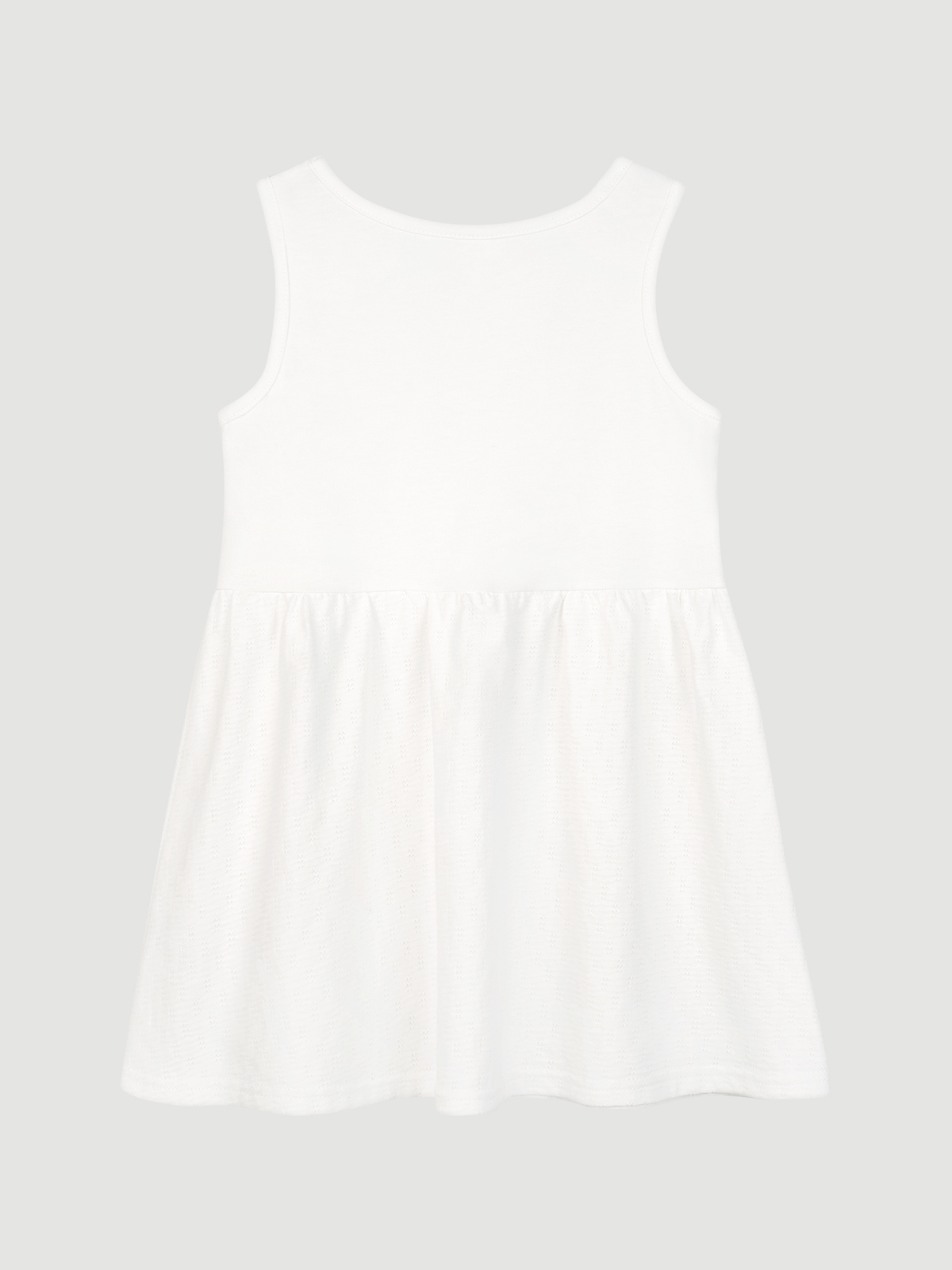 Милый сарафан для девочки, выполнен из натурального 100% хлопка. Основная ткань платья – в жаккардовом переплетении, а спинка выполнена из гладкой ткани. Этот летний сарафан станет идеальным выбором для активных девочек, стремящихся провести лето весело и свободно. Легкость ткани позволит чувствовать себя комфортно даже в самые жаркие дни. Натуральный материал платья гипоаллергенный и абсолютно безопасен для здоровья. Расклешенная юбка дарит свободу движениям ребенка.
