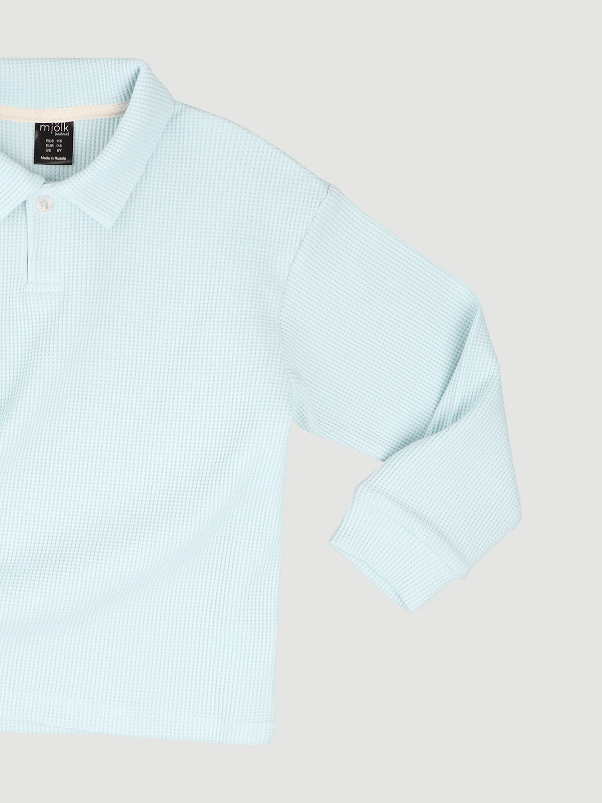 Поло оверсайз с длинным рукавом Mjölk представляет собой идеальное сочетание стиля и функциональности. Голубой школьный лонгслив оверсайз разработан специально для активных и динамичных детей. Изготовленная из высококачественного, 100% хлопка, этот стильный лонгслив поло с застёжкой на одну пуговицу обеспечивает исключительный комфорт и превосходную свободу движений на протяжении всего дня. Фактурный вафельный материал данной модели поло с длинным рукавом гарантирует идеальную посадку по фигуре и создает стильный образ в школьной форме.