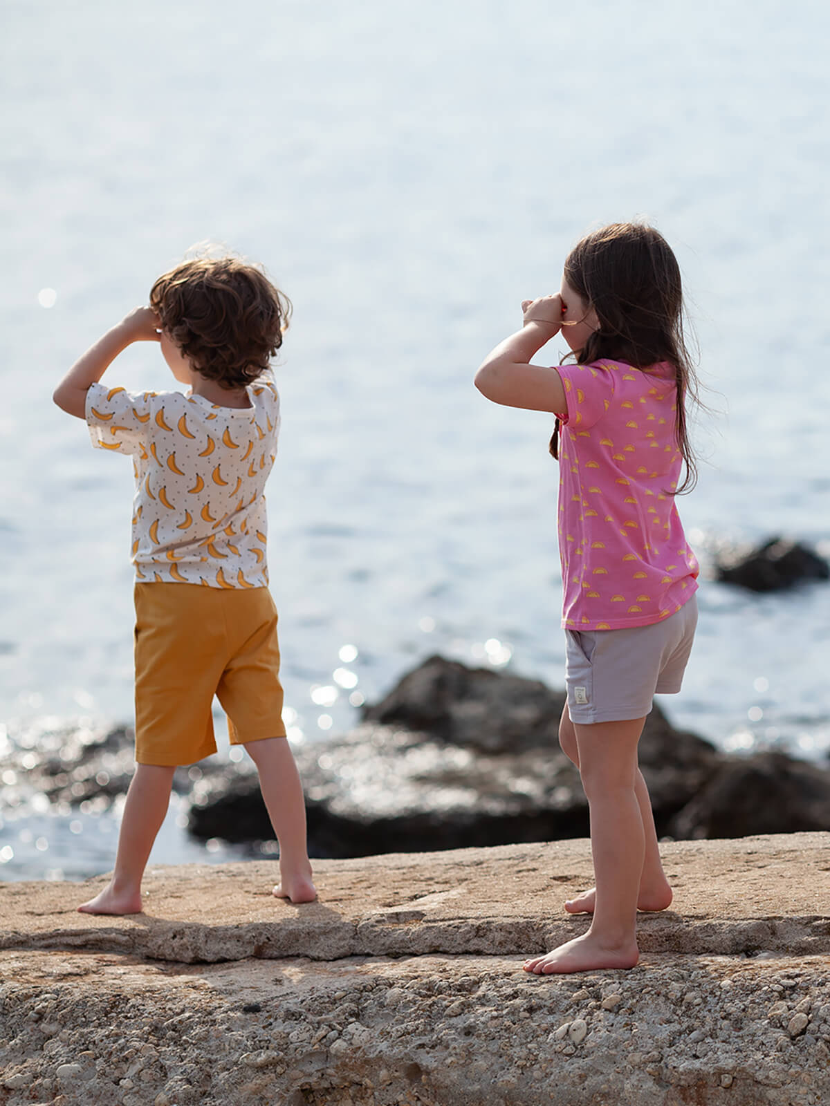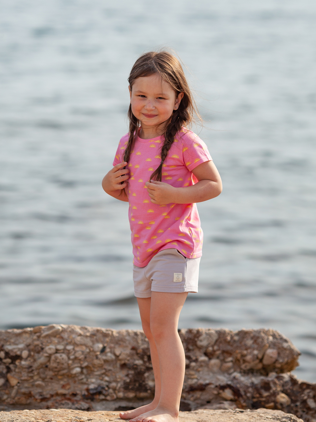 Трикотажные шорты от mjolk изготовлены из футера с небольшим добавлением эластана. Прямой крой, талия на поясе со шнурком хорошо регулируется, дополнены стильными боковыми карманами с диагональным входом. Стильные шорты для детей подходят для повседневного использования дома, для сна, для походов в детский сад. Это базовые шорты для активных игр и прогулок. Составят отличный комплект с футболками mjolk. Идеально сочетаются с топами, объемными свитшотами, подойдут к любимым кроссовкам и кедам.
