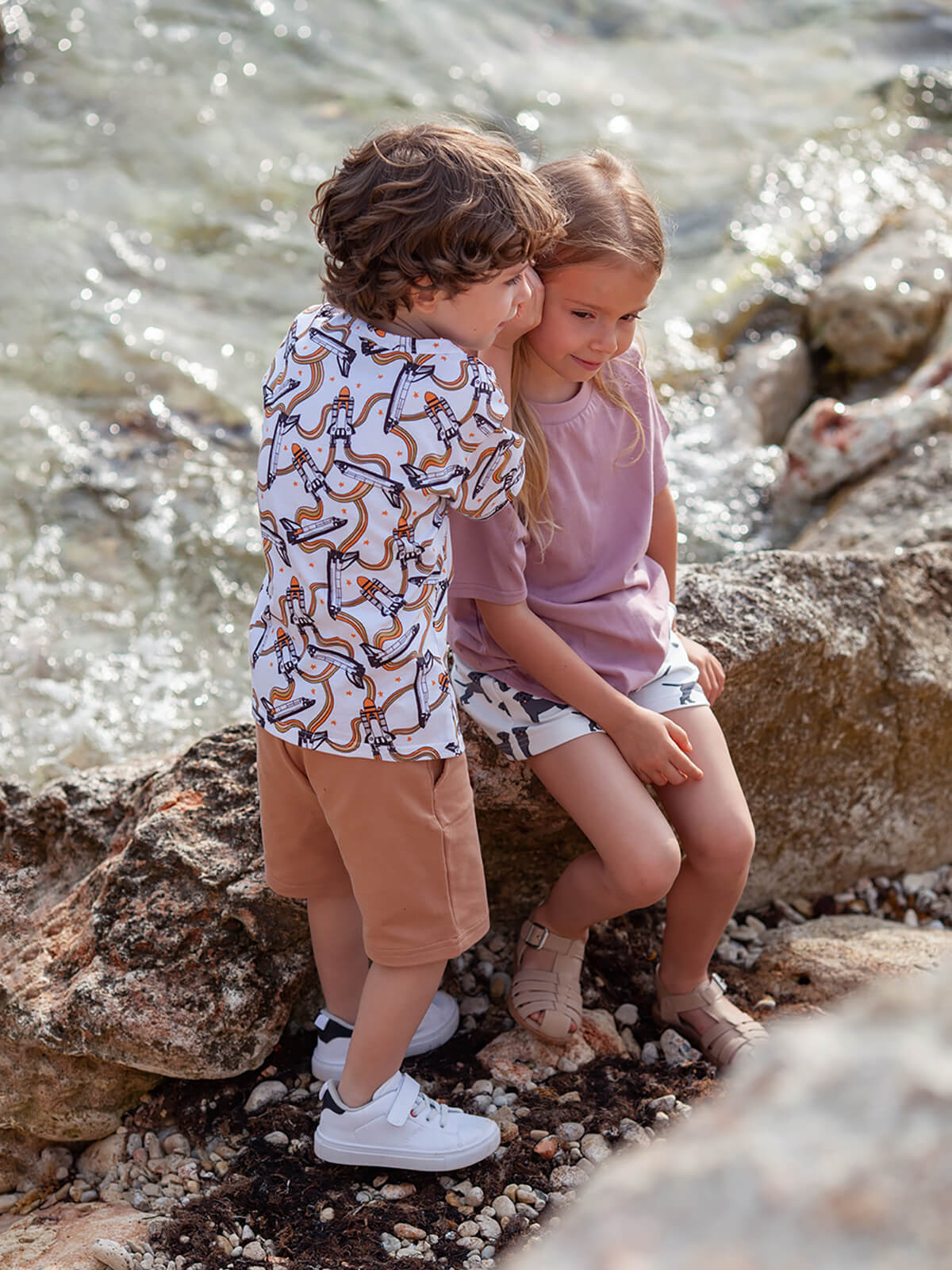 Трикотажные шорты для мальчиков и девочек от mjolk изготовлены из футера с небольшим добавлением эластана. Прямой крой, талия на поясе со шнурком хорошо регулируется, дополнены стильными боковыми карманами с диагональным входом. Стильные шорты для детей подходят для повседневного использования дома, для сна, для походов в детский сад. Это базовые шорты для активных игр и прогулок. Составят отличный комплект с футболками mjolk. Идеально сочетаются с топами, объемными свитшотами, подойдут к любимым кроссовкам и кедам.