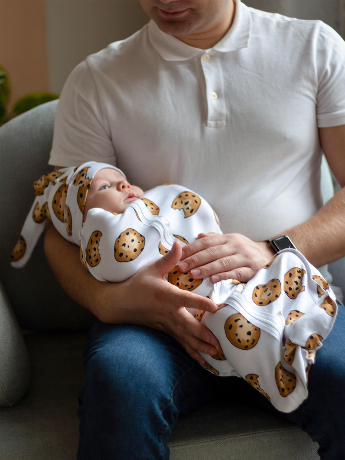 Комплект {пелёнка-кокон и шапочка с узелком} подарит малышу спокойный сон с самого рождения. Двухзамковая молния поможет легко сменить подгузник. Мягкий гипоаллергенный материал кокона окутывает малыша, помогает снизить рефлекс внезапного вздрагивания и создаёт знакомые ощущения «как в животике у мамы».