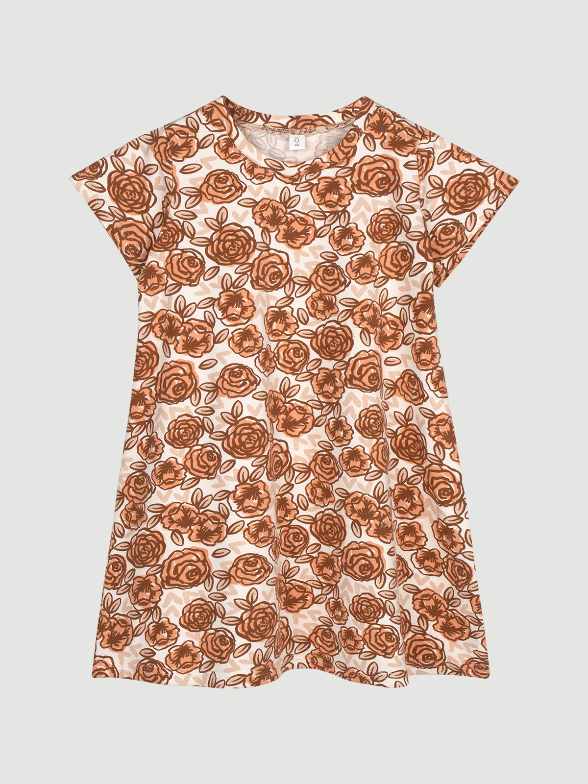 Детское платье для девочки Mjölk [мьёльк]. Силуэт трапеция, короткие рукава, круглый вырез. Яркий и стильный принт понравится с первого взгляда и дополнит любой гардероб.