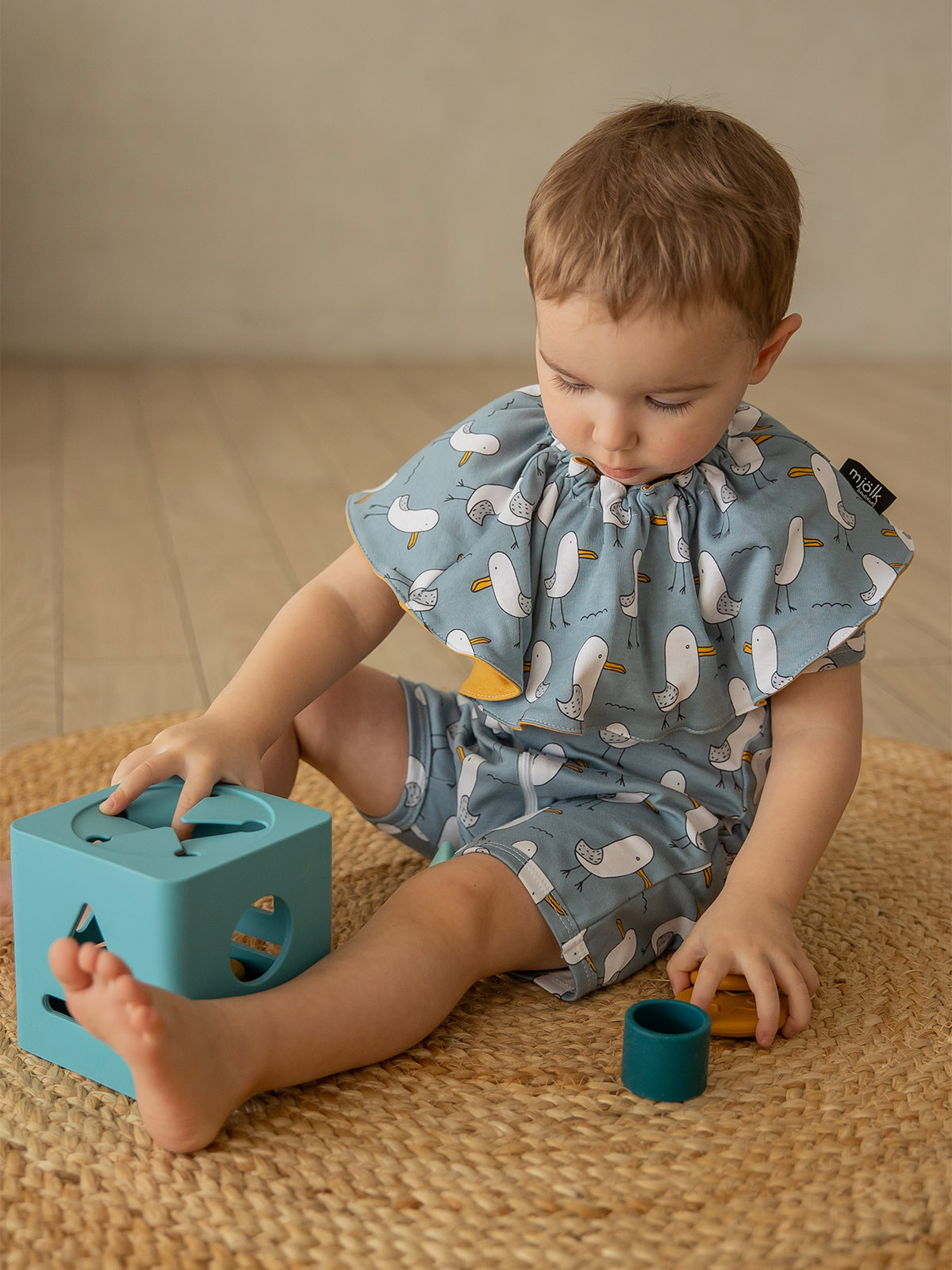 Нагрудник элементарно надевается, хорошо впитывает жидкость и быстро сохнет. Две стороны отличаются расцветками и авторскими принтами, что позволяет легко менять образ малыша. Дома, в ресторане и в гостях ребёнок будет выглядеть стильно и аккуратно.