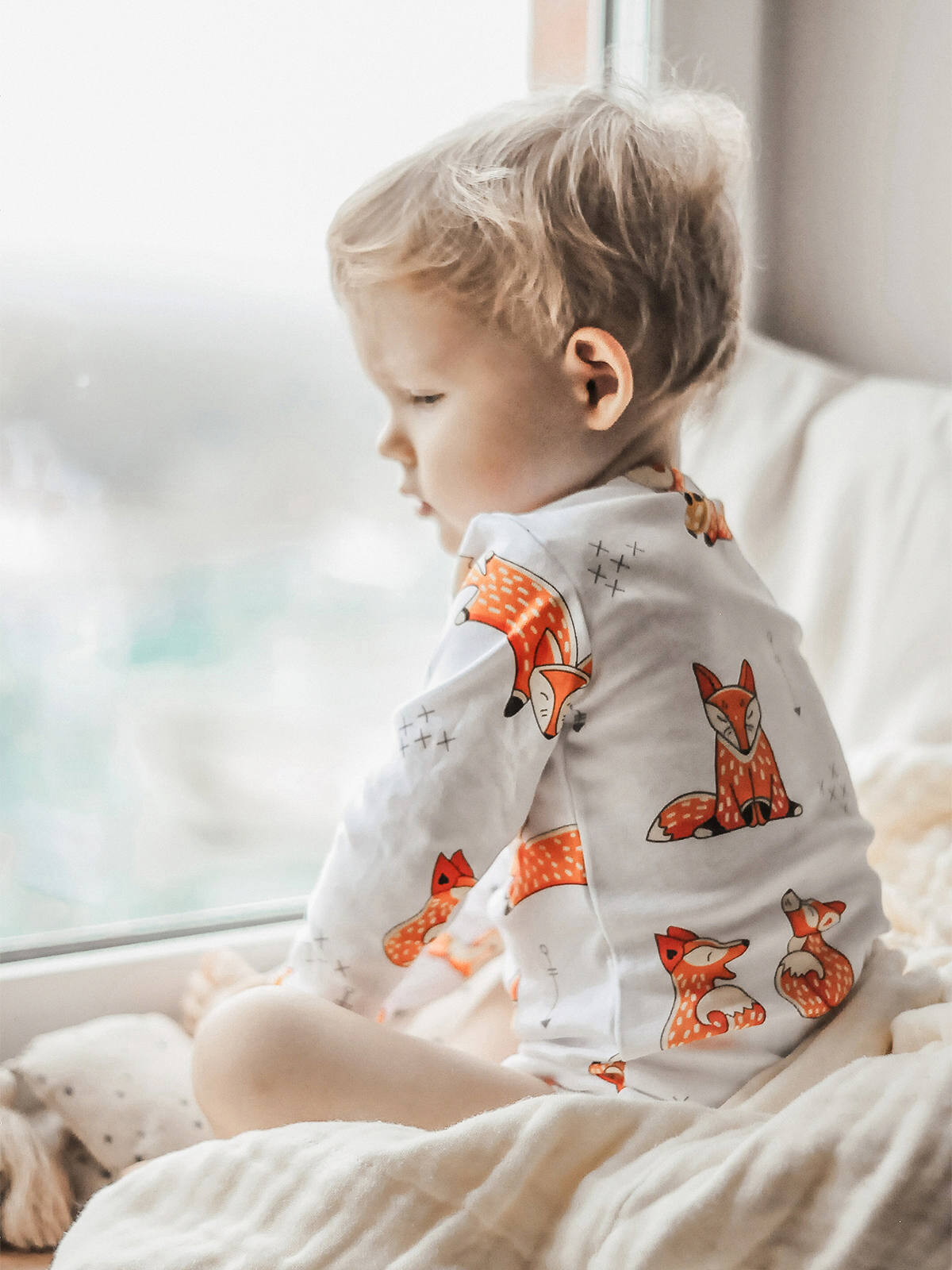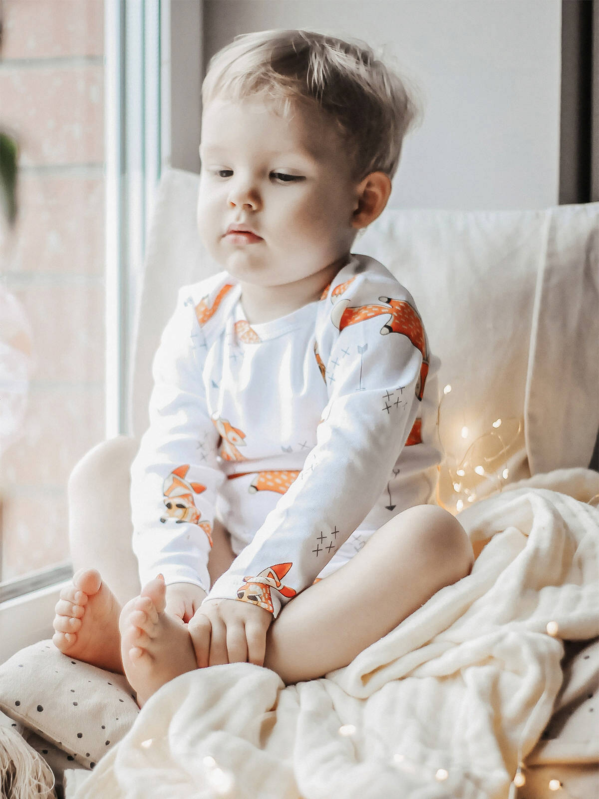 Боди Mjölk Лисички с длинным рукавом выполнен из тонкого 100% трикотажного хлопка. Плетение нитей в этой ткани менее плотное, чем у другой одежды из нашей коллекции, что позволяет комфортно использовать боди в качестве первого слоя. Материал приятный на ощупь, эластичный, гигроскопичный, "дышит" и не вызывает аллергии. Кнопки расположены значительно выше их привычного месторасположения, что облегчает застёгивание изделия на малыше.