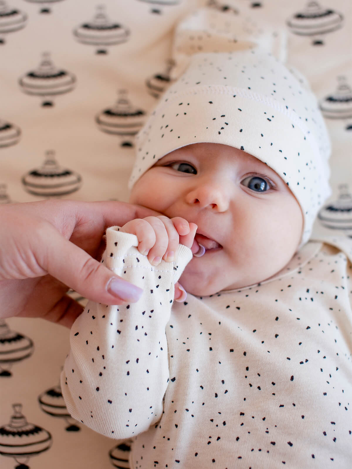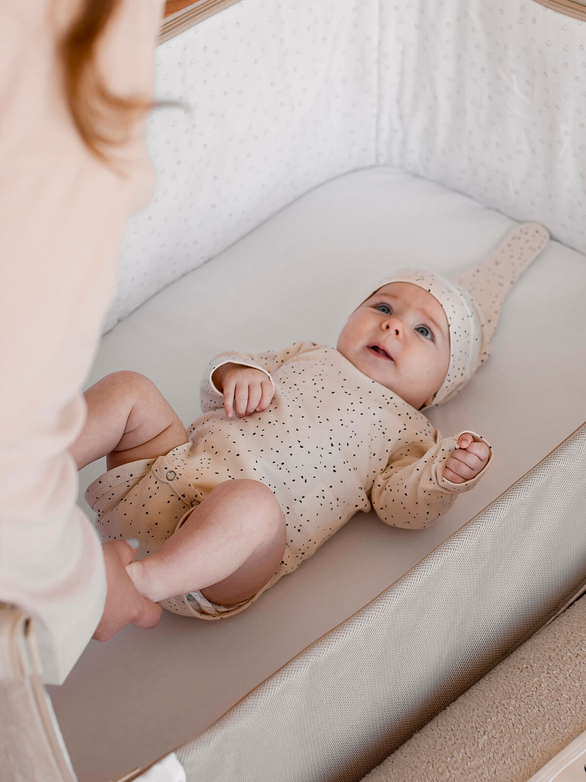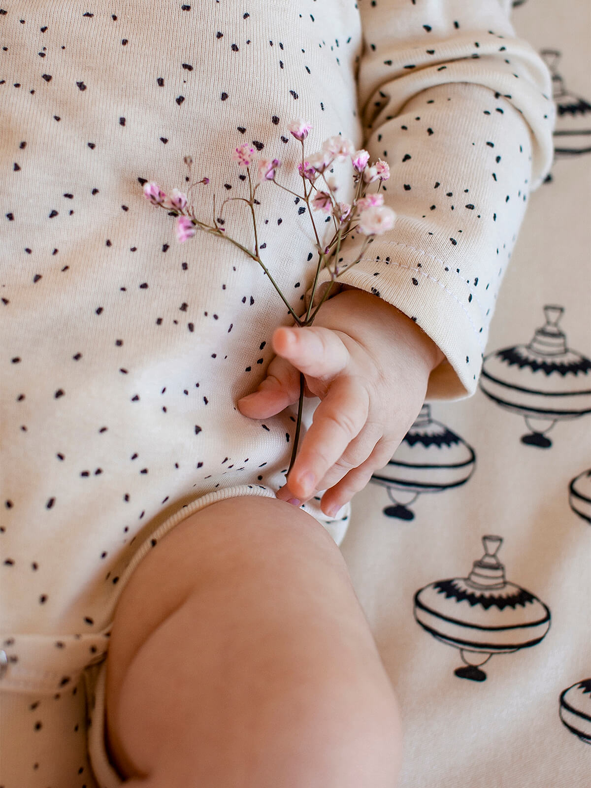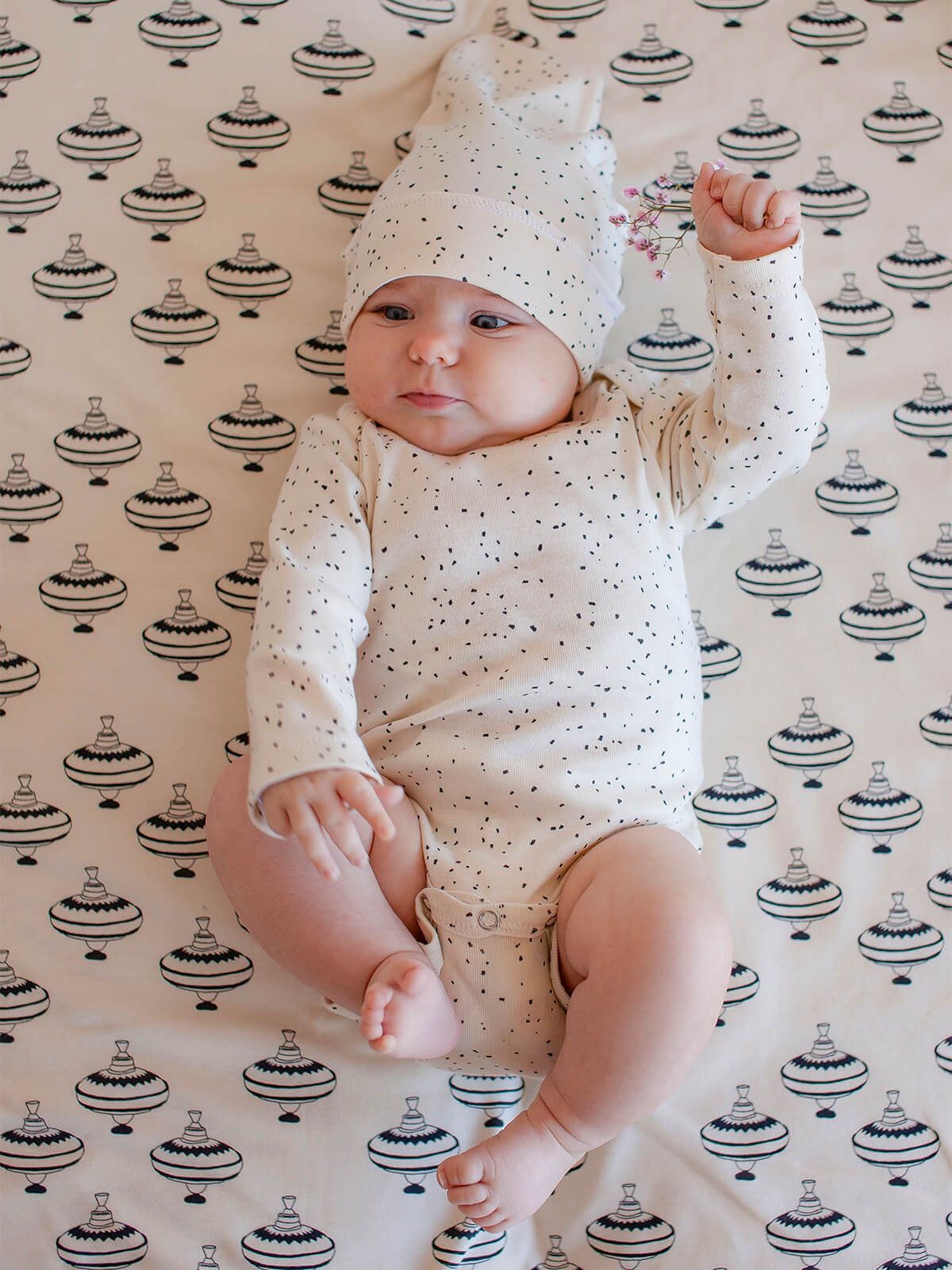 Боди Mjölk [мьёльк] растягивается по фигуре, ребёнку в нём не жарко, он не потеет. В такой одежде можно играть и спать круглый год, поддевать её под комбинезон или спальный мешок. Материал приятный на ощупь, эластичный, гигроскопичный, "дышит" и не вызывает аллергии. Кнопки расположены значительно выше их привычного месторасположения, что облегчает застёгивание изделия на малыше. В сопутствующих товарах можно подобрать изделия в комплект с таким же принтом: мягкую шапочку с узелком, двусторонний плед, сет пелёнок в тон или яркий комбинезон.