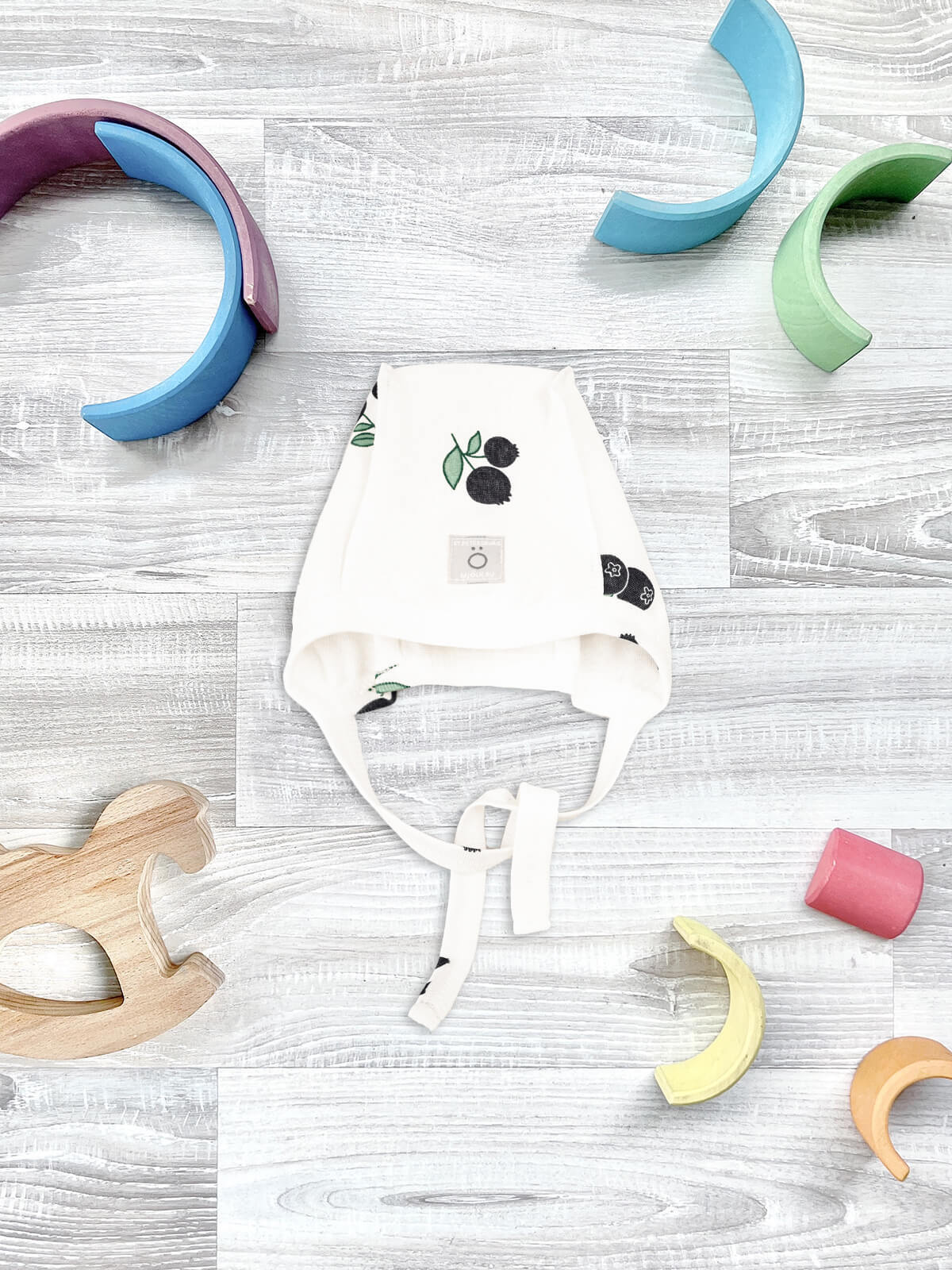 Ткань тонкая, невероятно мягкая, отлично тянется и дышит. Чепчик создан в нежной расцветке с милыми ягодками, дарит не только тепло и уют, но и нарядный образ. Подобрать подходящий размер поможет обхват головы и рост ребёнка. Изделие прекрасно дополнит боди, ползунки, комбинезоны и коконы Mjölk!