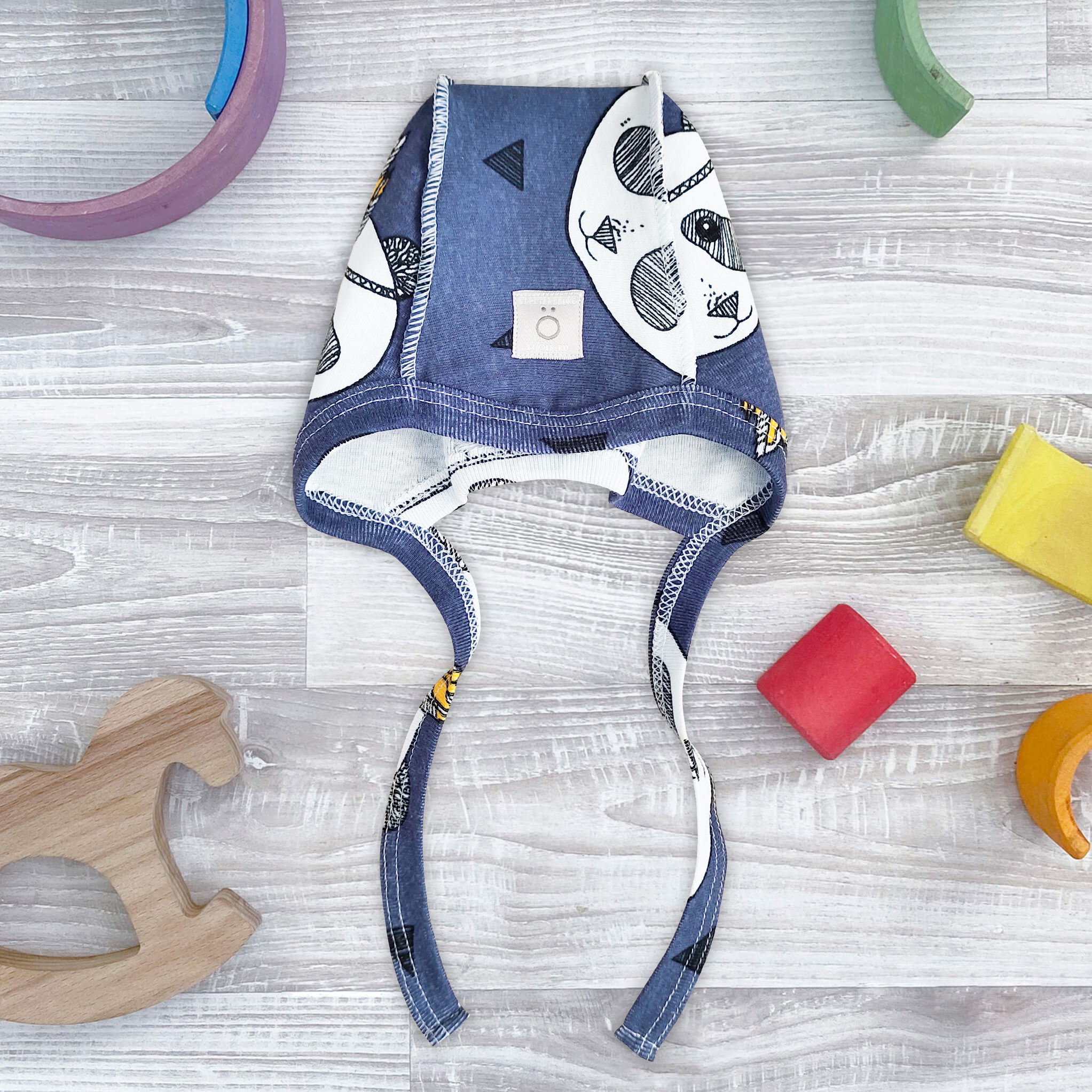 Чепчик mjölk [мьёльк] Панды выполнен из тонкого трикотажного хлопка, который мягко облегает головку и ушки малыша, и дарит новорожденному комфорт.