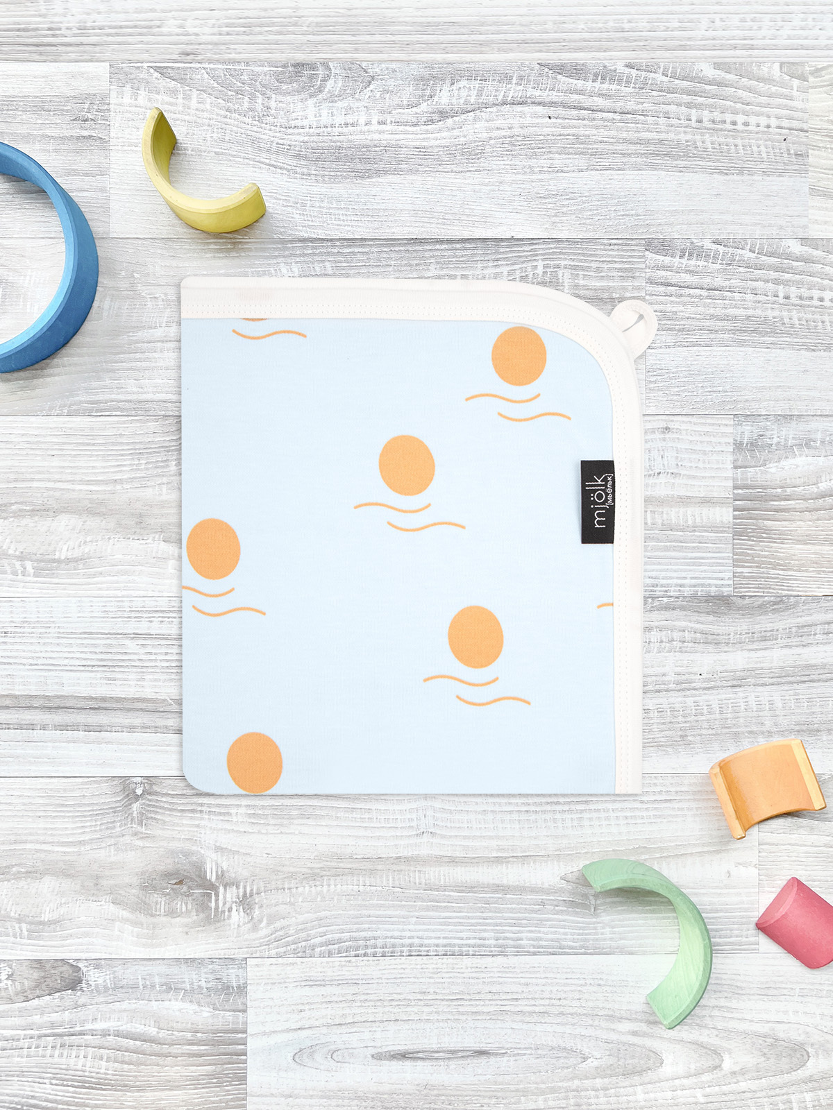 Двусторонний плед Mjölk [мьёльк] Новый день выполнен из двух слоёв трикотажного 100% хлопка без наполнителя. На одной стороне пледа расположился геометрический рисунок из разноцветных игрушек, а на второй – россыпь серебристо-серых звёздочек на белом фоне. Размер пледа можно выбрать: 80 см*80 см или 120 см*85 см. Материал нежный и мягкий, «дышит», не вызывает аллергии и дарит ребёнку уют. Плед можно использовать для сна в кроватке, коляске и автокресле, как накидку для кормления. Яркий принт делает его отличным фоном для фотосессий в домашних условиях или на улице.