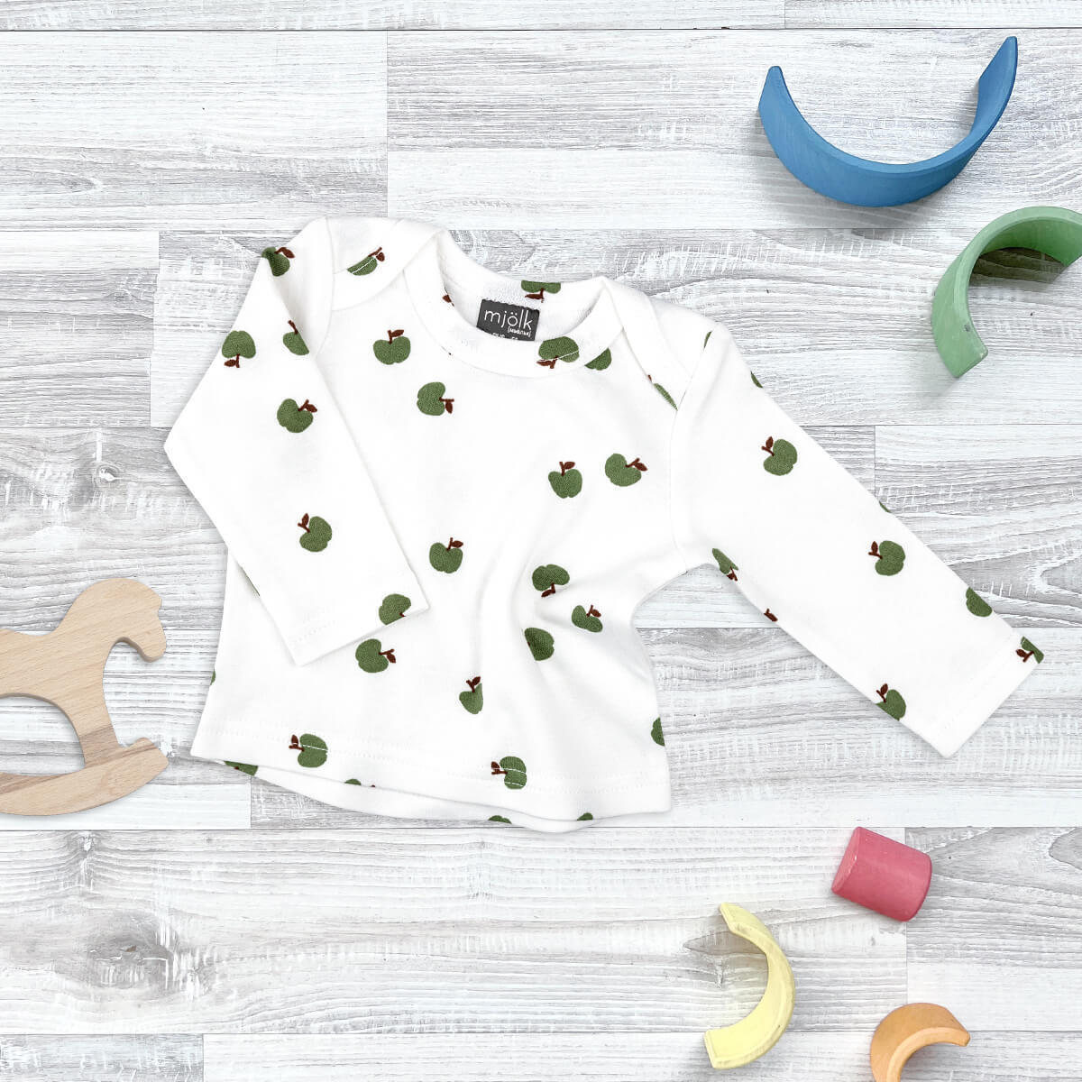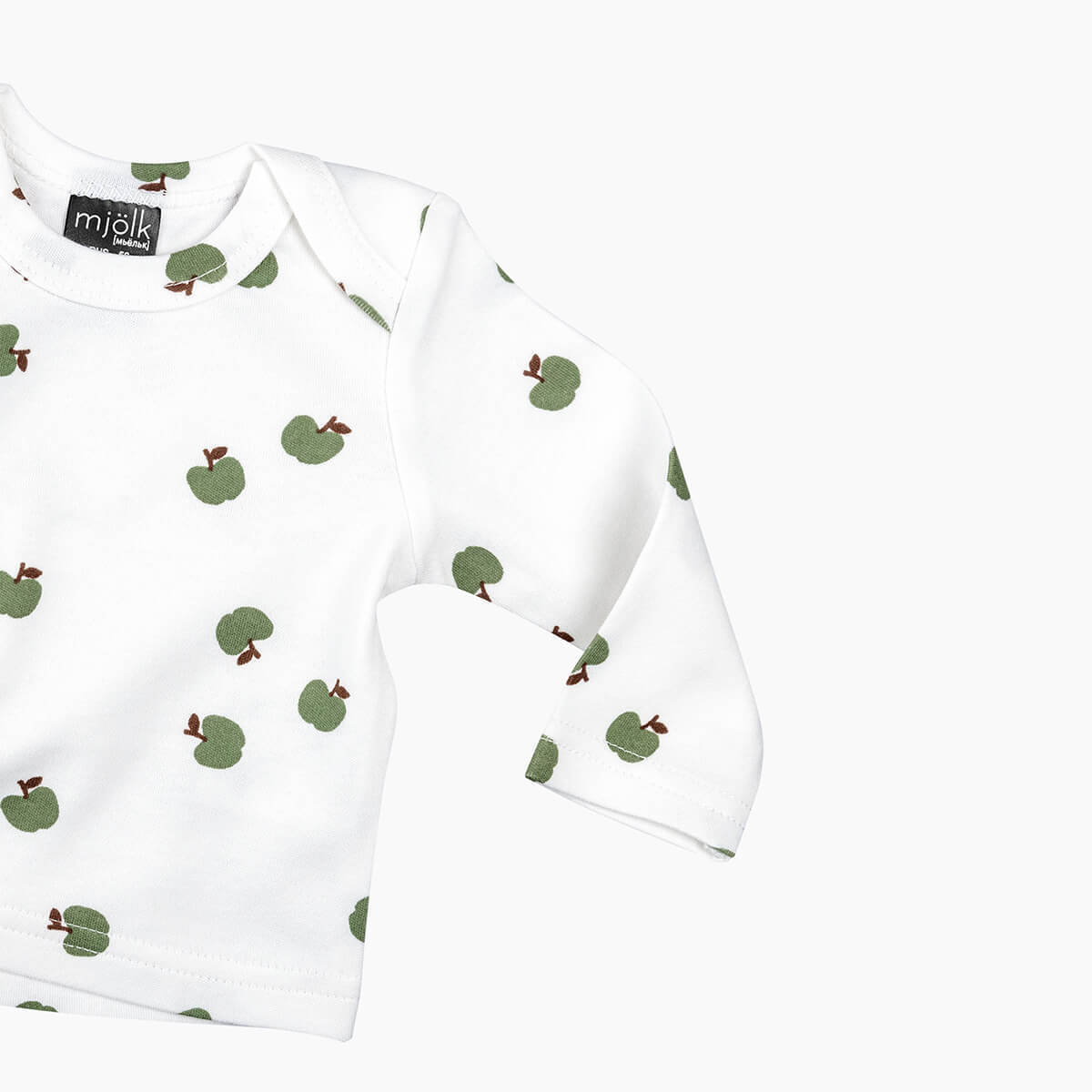Футболка с длинным рукавом Mjölk [мьёльк] Яблочки подойдёт мальчикам и девочкам. Дополнить образ можно шапочкой и ползунками в тон, или же подобрать плед и нагрудник в сопутствующих товарах.