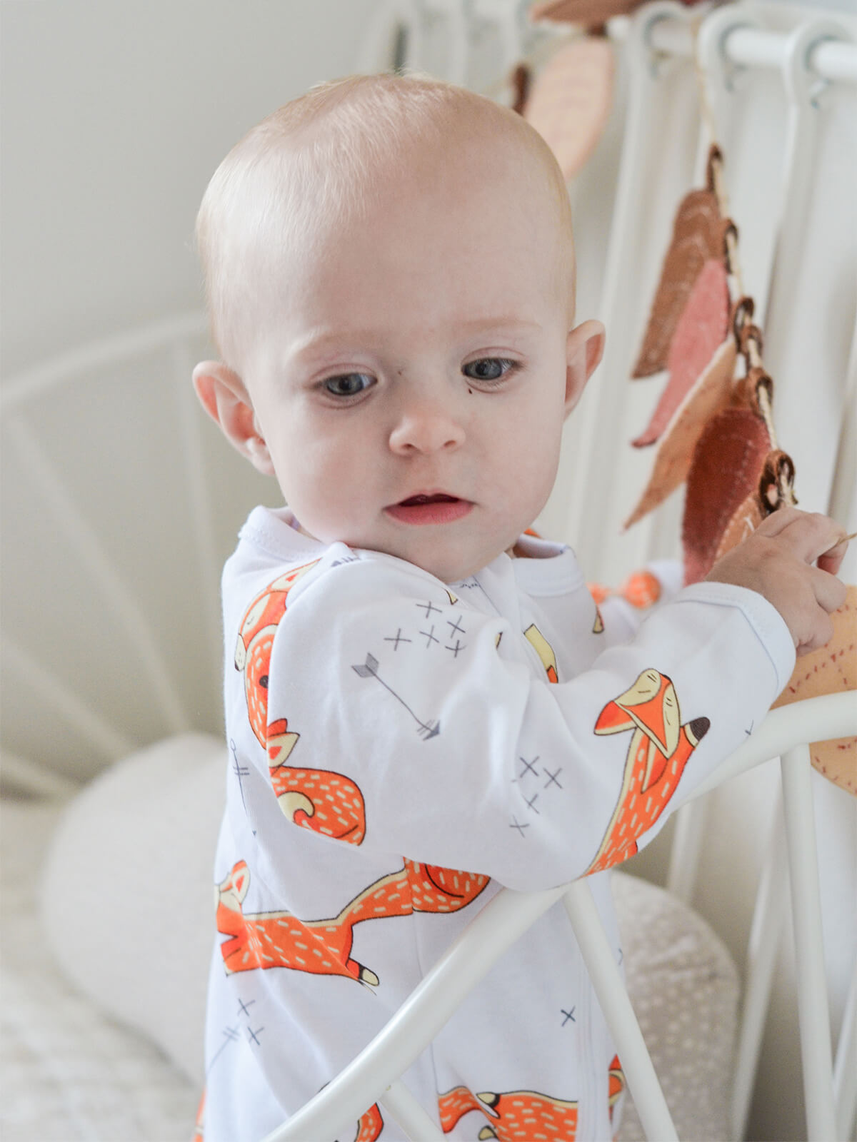 Комбинезон Mjölk Sleep and Play Лисички выполнен в яркой и запоминающейся расцветке: на белом фоне расположился красочный рисунок из жизнерадостных лисичек огненного оранжевого цвета. Принт подойдёт мальчикам и девочкам, а шапочку в тон можно подобрать в сопутствующих товарах или в разделе Шапочки.