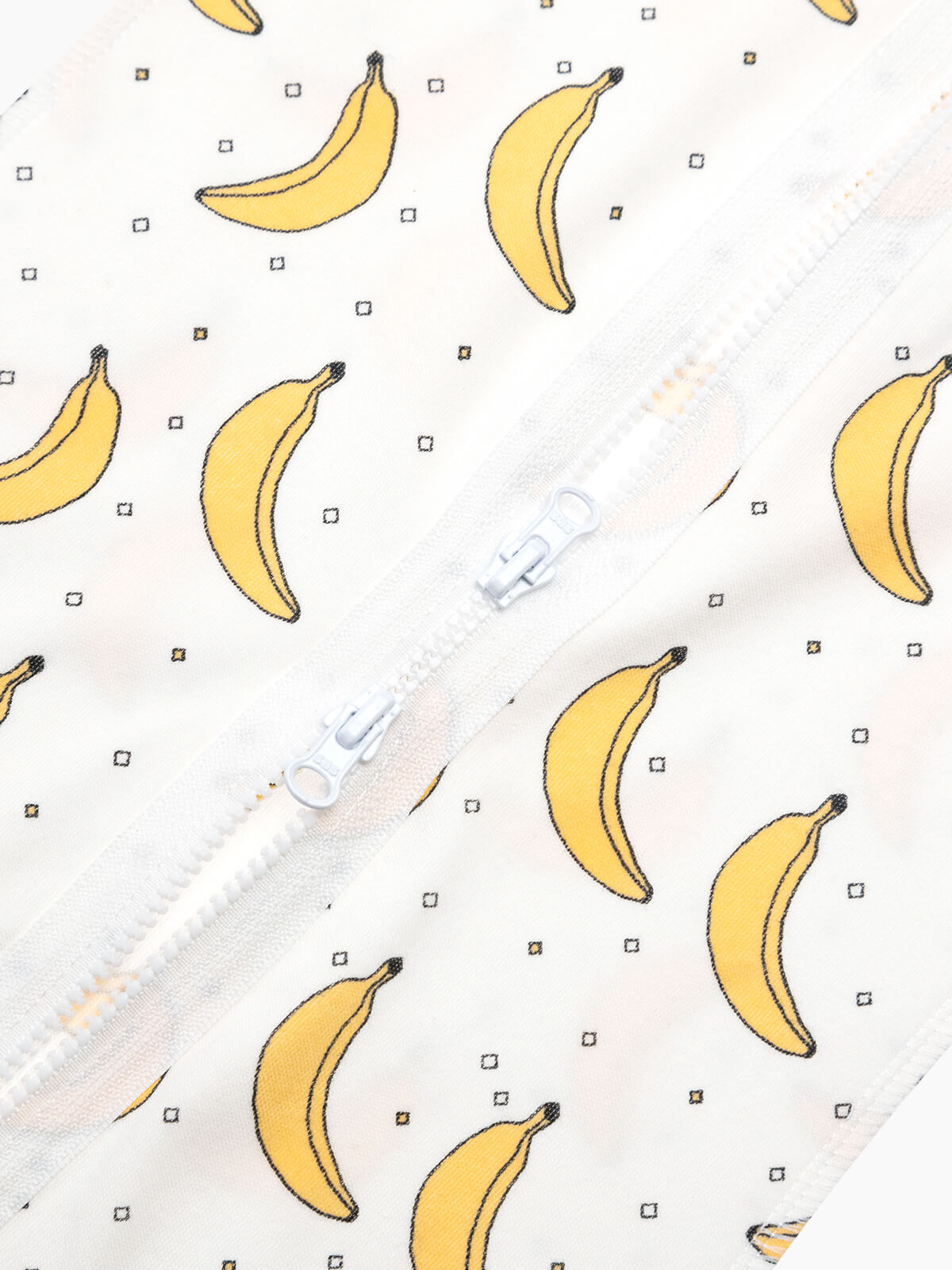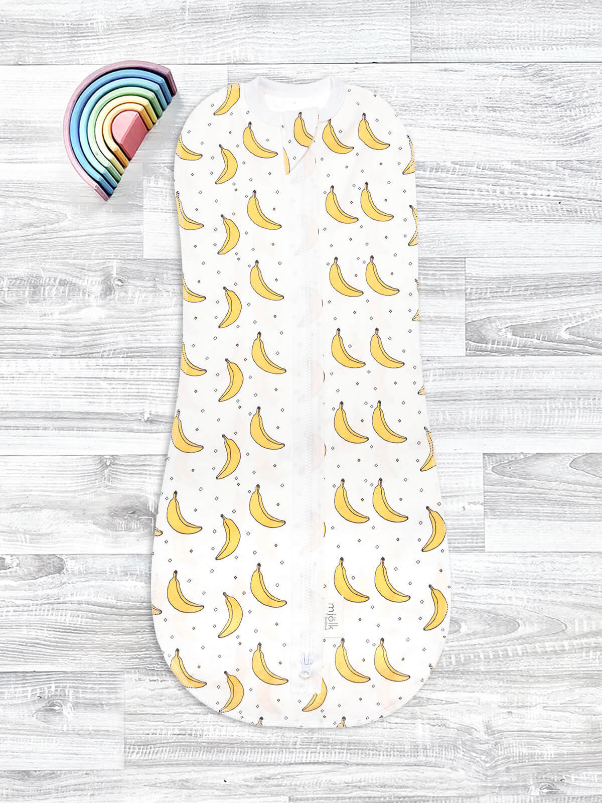 Пеленальный кокон Mjölk Бананы – необходимая вещь для малыша до года. Кокон выполнен швами наружу, молния нашита так, чтобы не соприкасаться с кожей, а у шеи дополнительно защищена трикотажным языком. В коконе ребёнок будет спокойно спать без возможности распеленаться, а двухзамковая молния позволит удобно сменить подгузник.