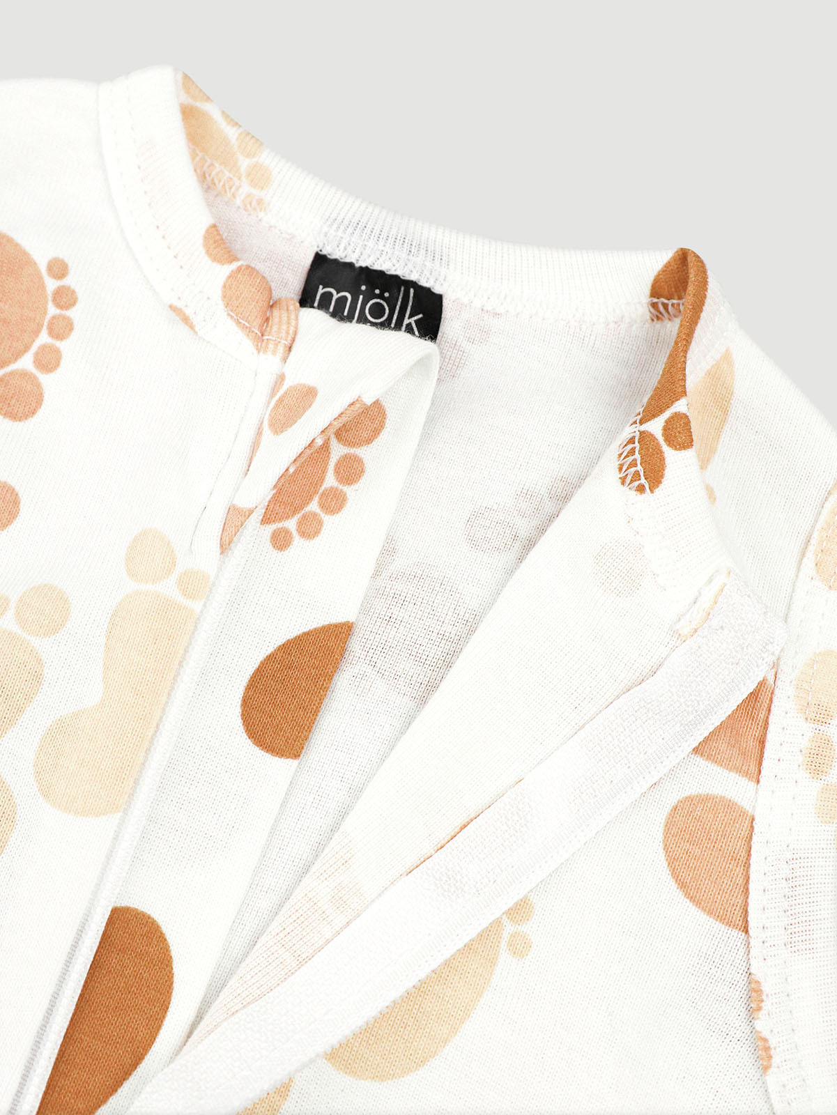 Молния изнутри защищена планкой, поэтому не соприкасается с нежной кожей малыша, а на вороте у шеи дополнительно нашит трикотажный язычок. Он закрывает бегунок и не даёт застёжке раскрыться.