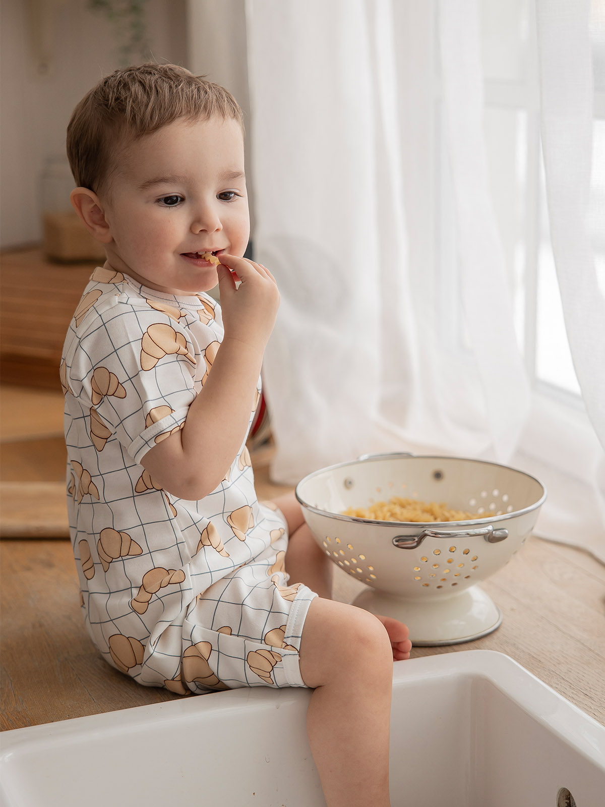 Песочник подойдёт для носки круглый год в качестве мягкой пижамки, а также самостоятельной одежды в тёплое время года.