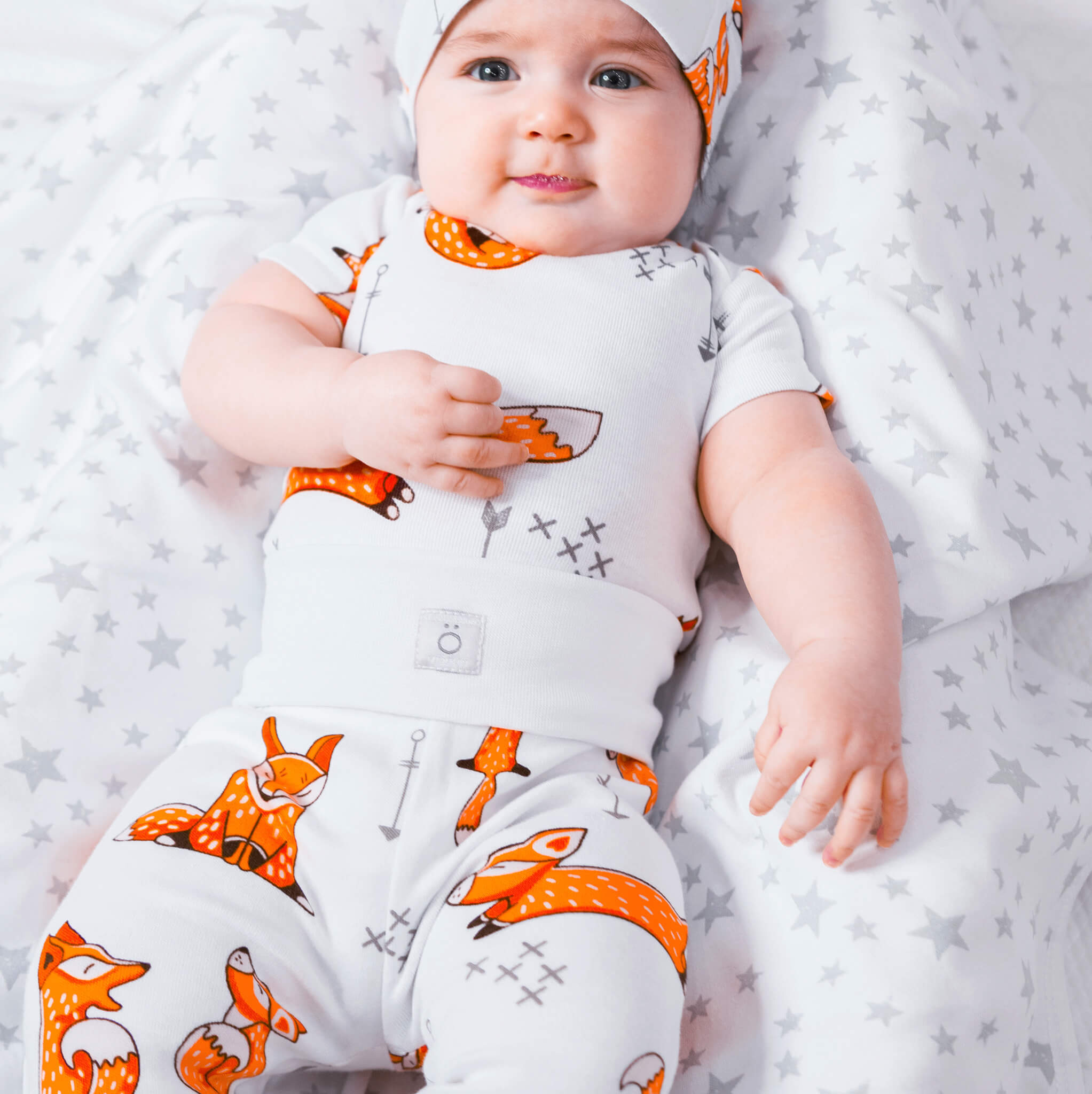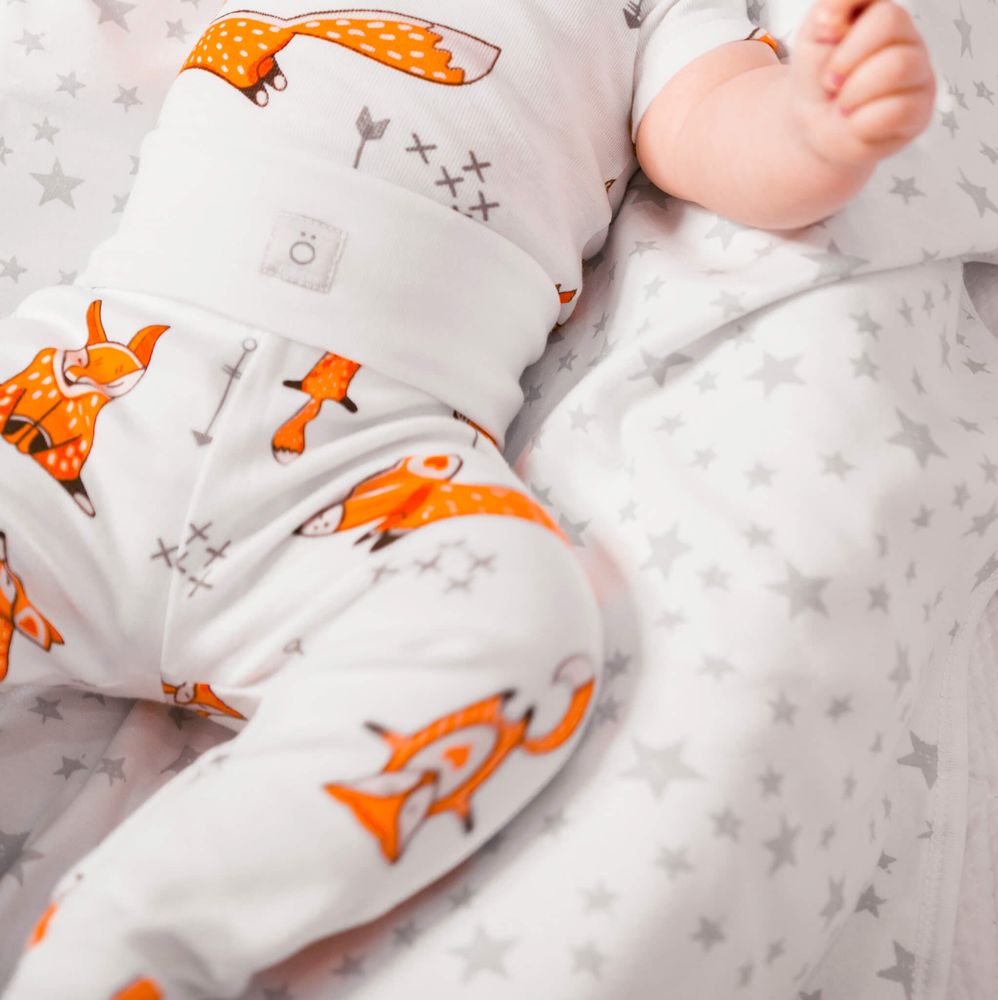 Ползунки Mjölk Лисички на широком поясе выполнены в милой расцветке: на белом фоне расположился рисунок из оранжевых лисичек. Принт подойдёт мальчикам и девочкам, подарит яркий образ, дополнить который можно боди и шапочками с принтами в тон.