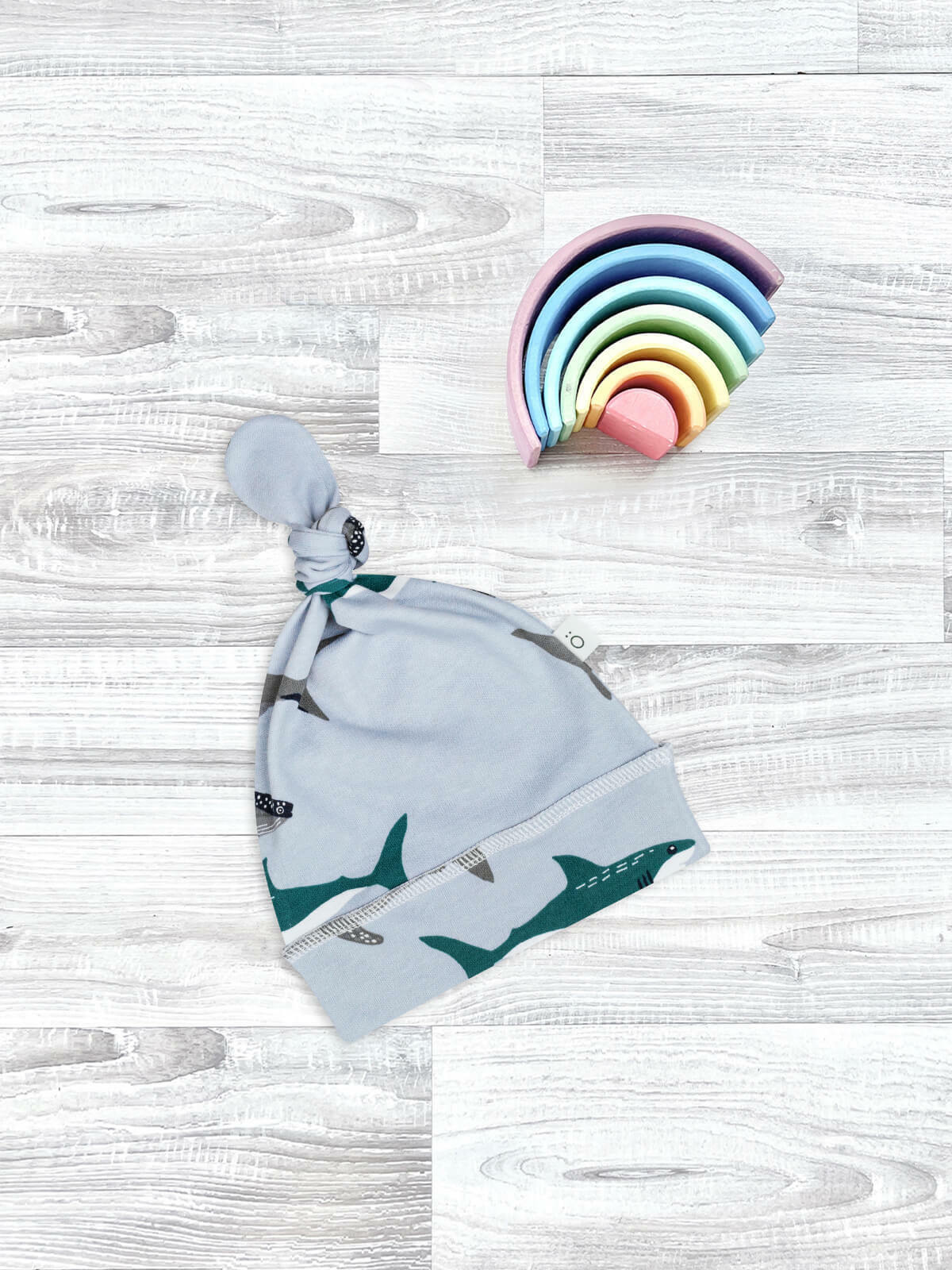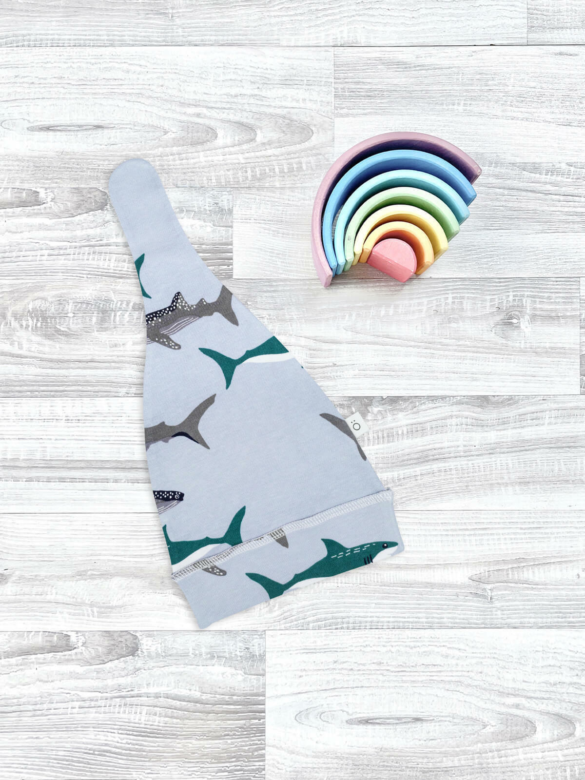 Шапочка с узелком Mjölk [мьёльк] Акулы выполнена из нежного трикотажного 100% хлопка. Материал эластичный, не вызывает аллергии, дарит ребёнку уют и комфорт, а оригинальный принт придаёт малышу яркий и нарядный образ.