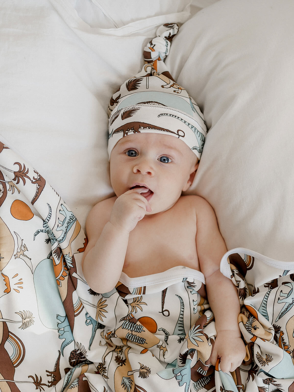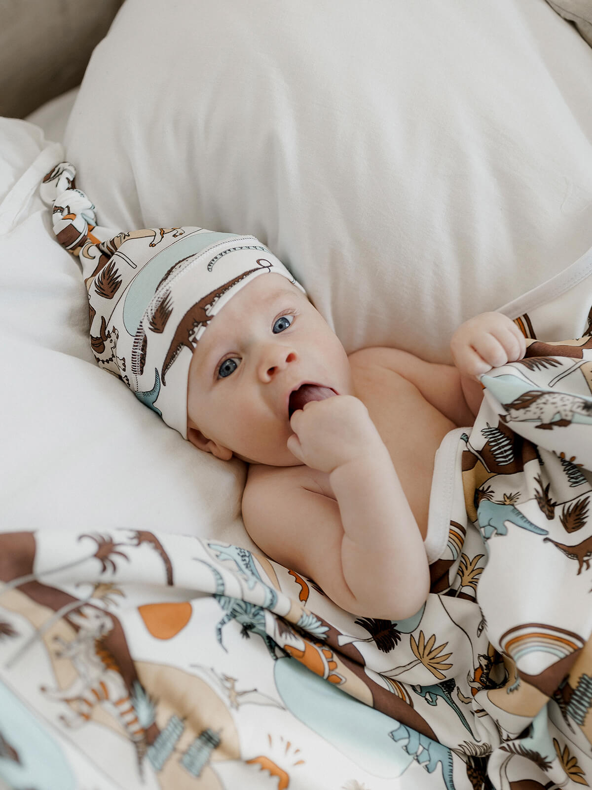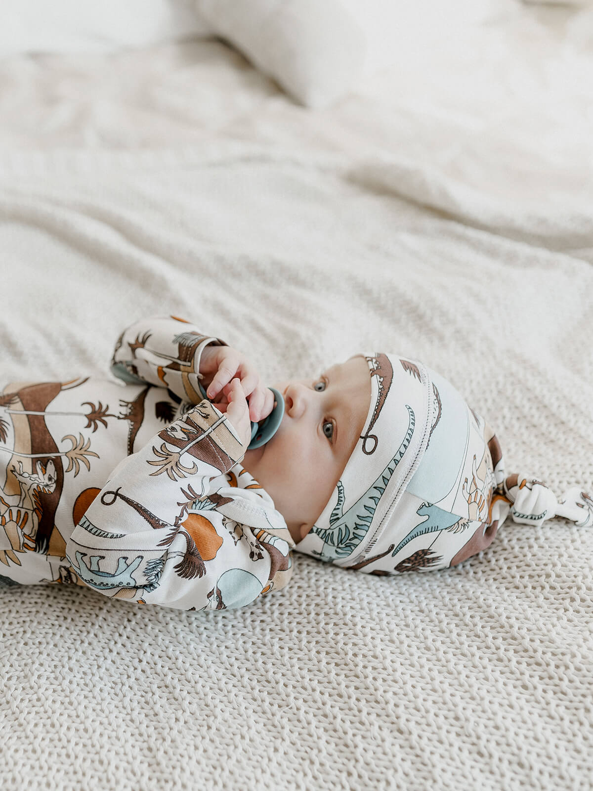 Шапочка с узелком mjölk [мьёльк] Dinoworld выполнена их трикотажного хлопка, который подходит нежной коже новорожденного, не вызывает аллергии и дарит малышу комфорт.