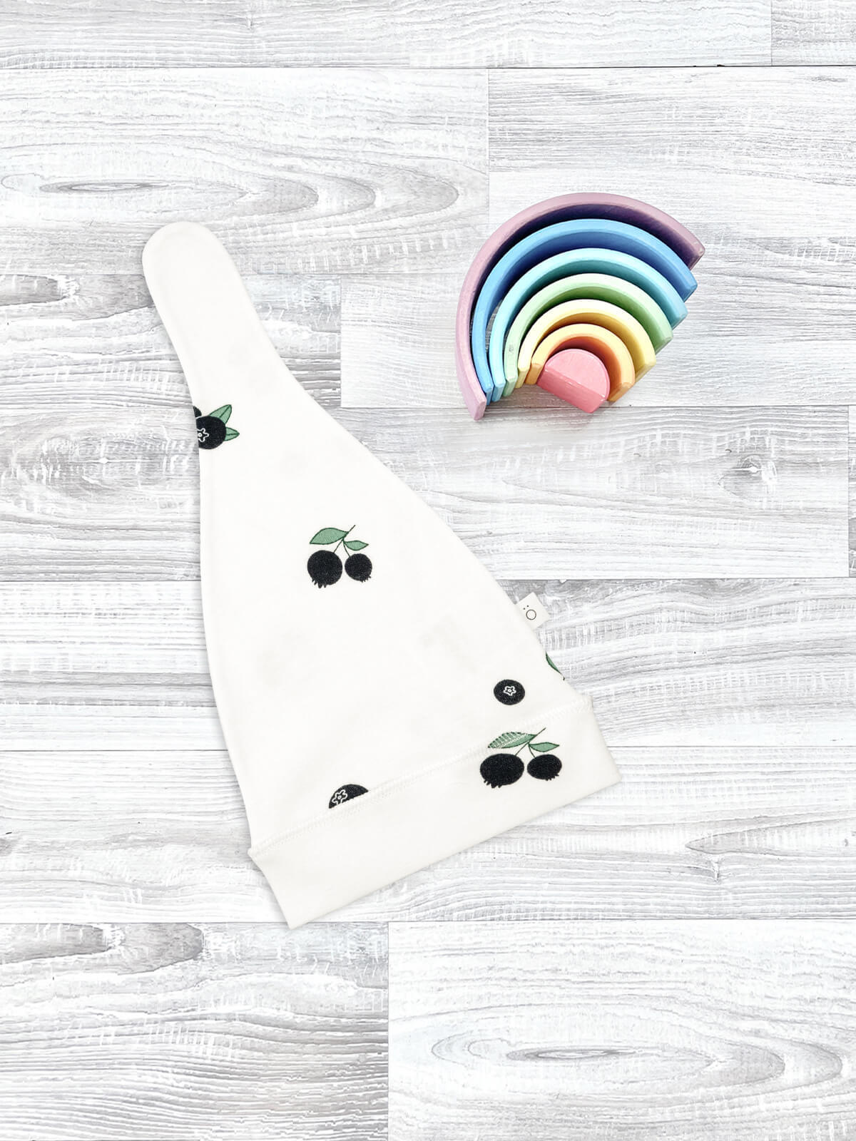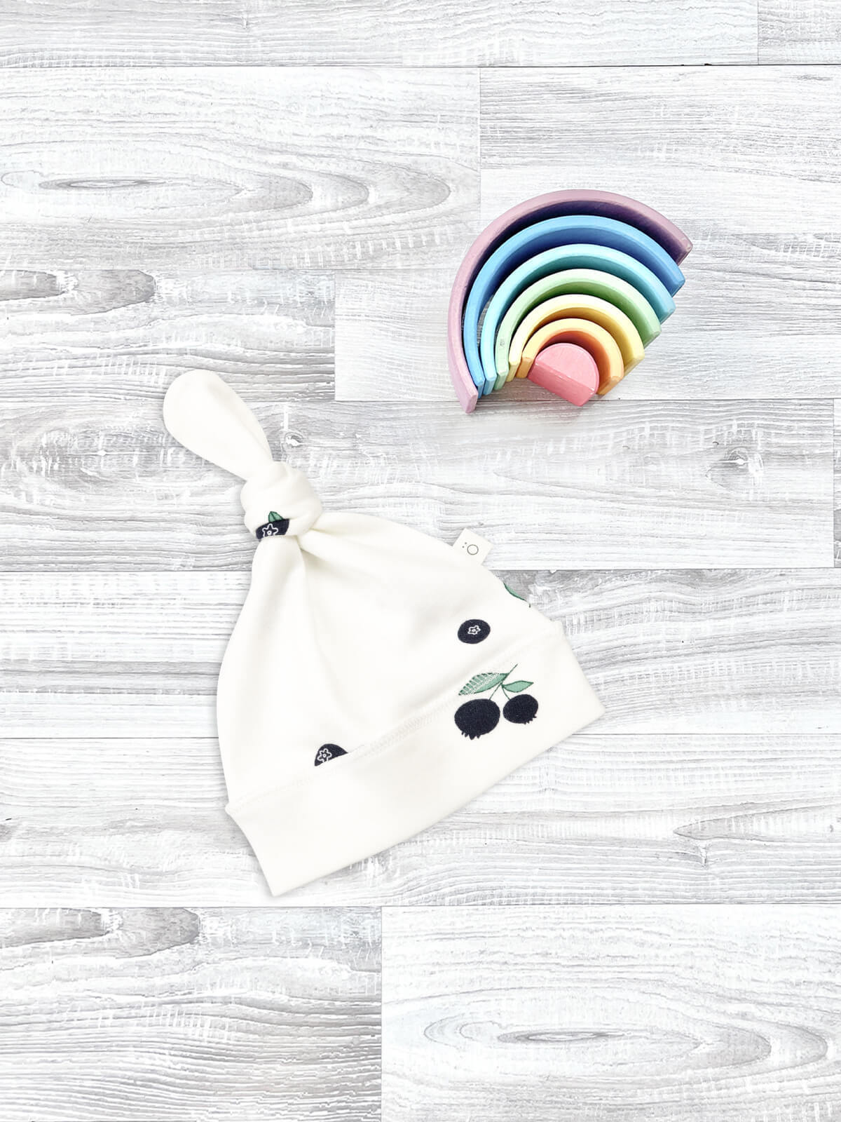Шапочка с узелком mjölk [мьёльк] выполнена их трикотажного хлопка, который подходит нежной коже новорожденного, не вызывает аллергии и дарит малышу комфорт.