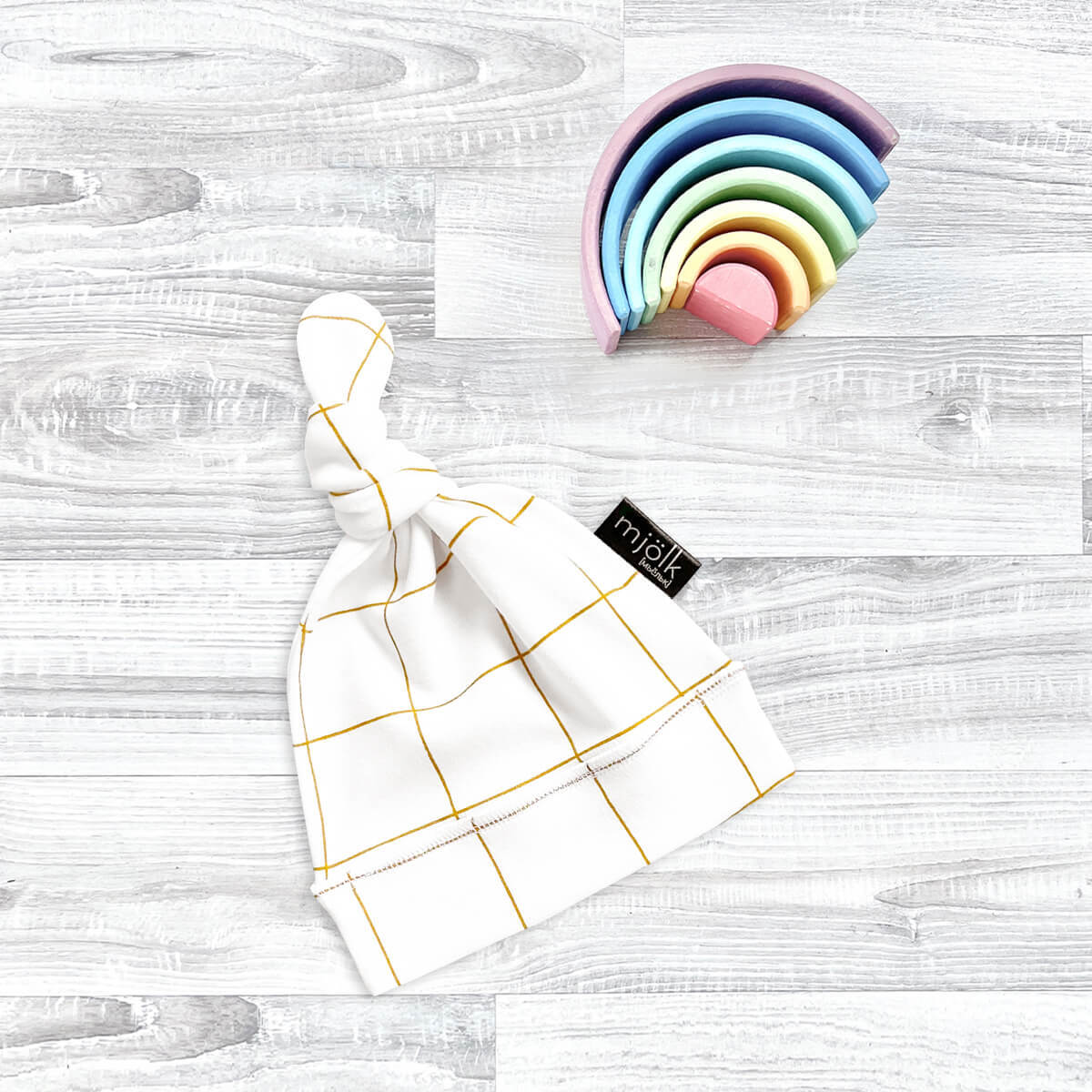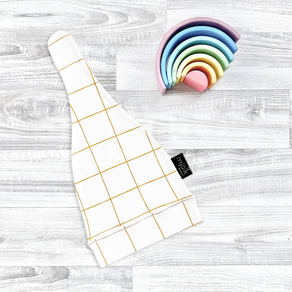 Шапочка с узелком Mjölk выполнена их трикотажного хлопка, который подходит нежной коже новорожденного, не вызывает аллергии и дарит малышу комфорт.