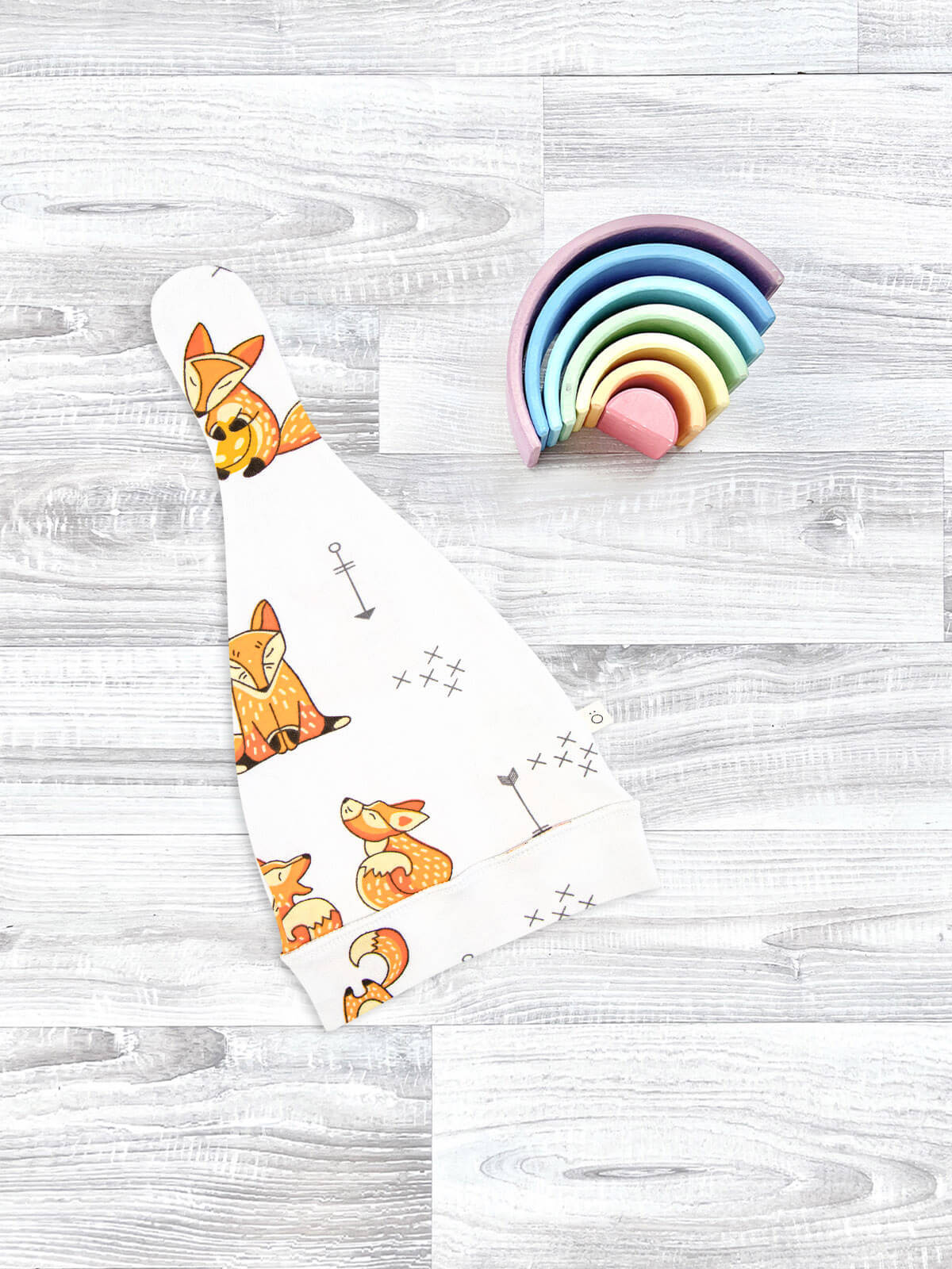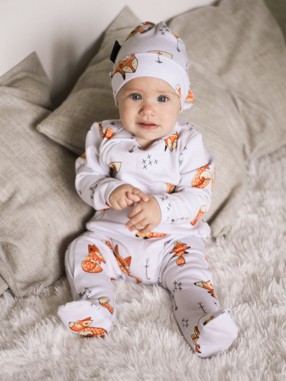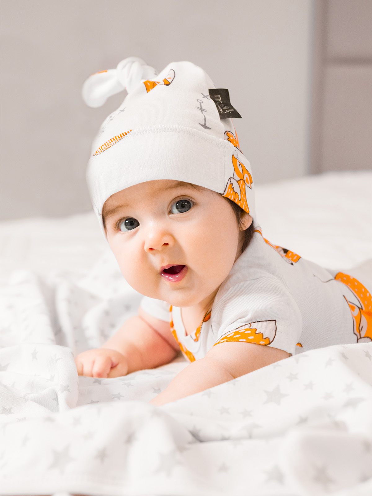 Шапочка с узелком Mjölk Лисички выполнена из нежного трикотажного 100% хлопка. Материал эластичный, не вызывает аллергии, дарит ребёнку уют и комфорт, а красочный принт придаёт малышу яркий и запоминающийся образ.