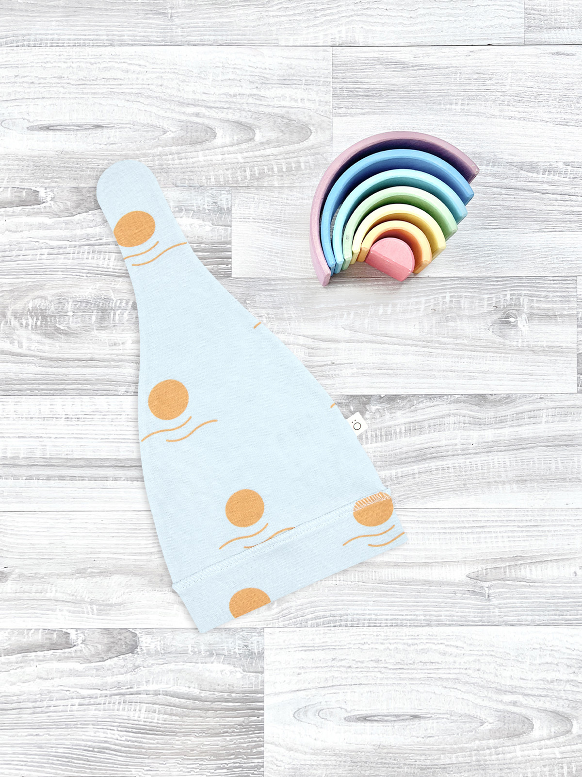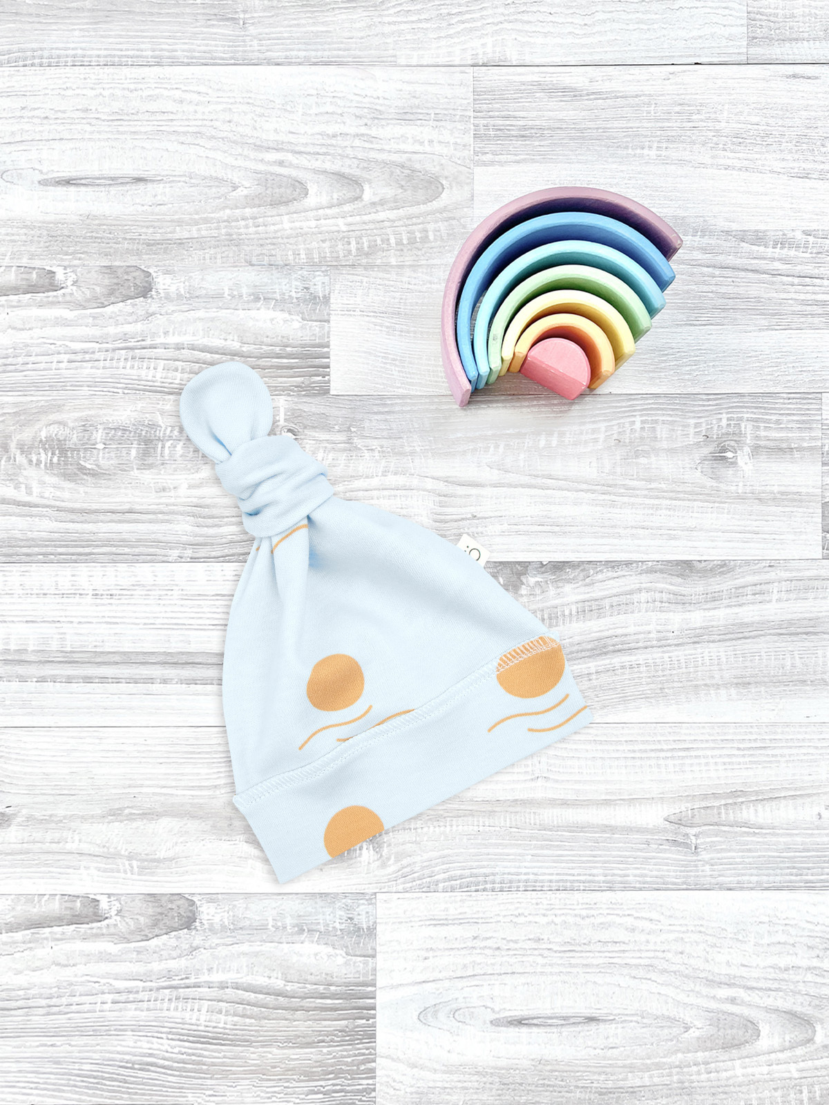 Шапочка с узелком mjölk [мьёльк] выполнена их трикотажного хлопка, который подходит нежной коже новорожденного, не вызывает аллергии и дарит малышу комфорт.