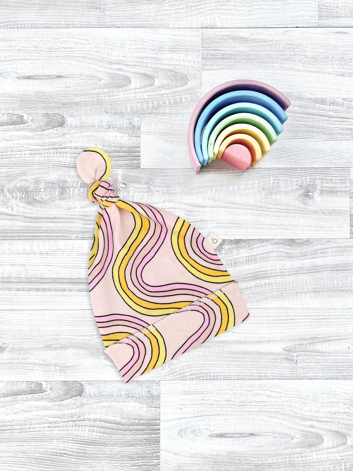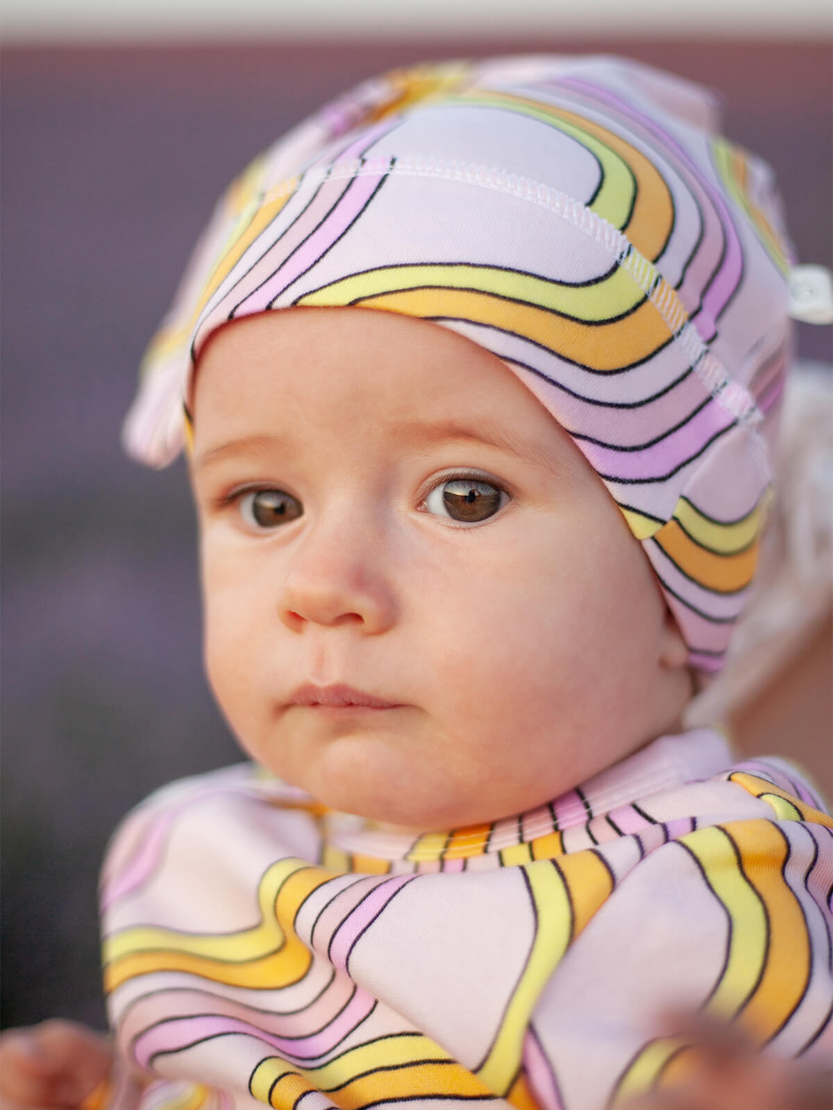 Шапочка с узелком mjölk [мьёльк] выполнена их трикотажного хлопка, который подходит нежной коже новорожденного, не вызывает аллергии и дарит малышу комфорт.