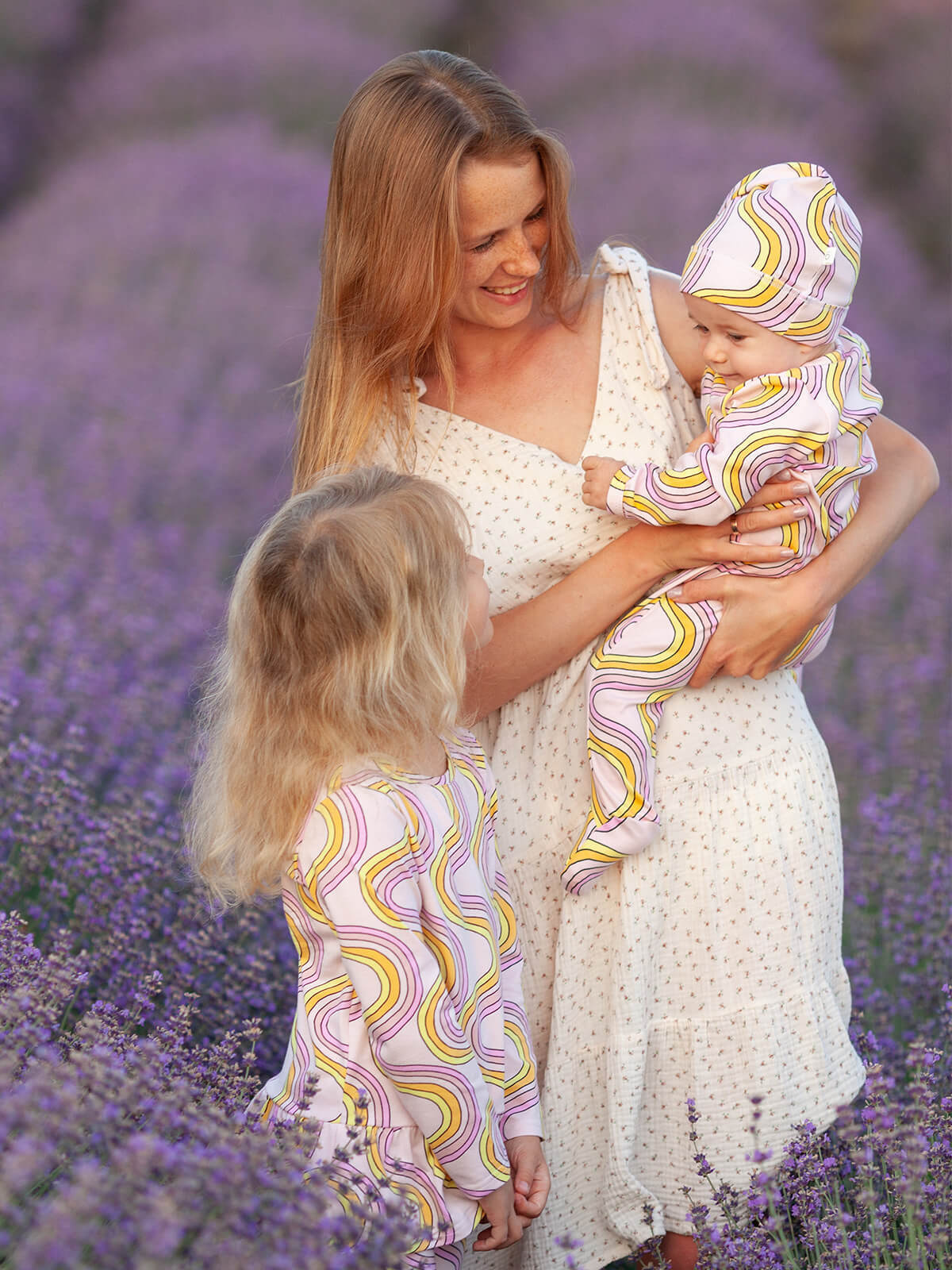 Произведено вручную в Санкт-Петербурге, с авторскими принтами и сертификатами на всю продукцию. Бережно упаковано в фатиновый мешочек и послужит хорошим подарком родным и близким к появлению на свет крошки.
