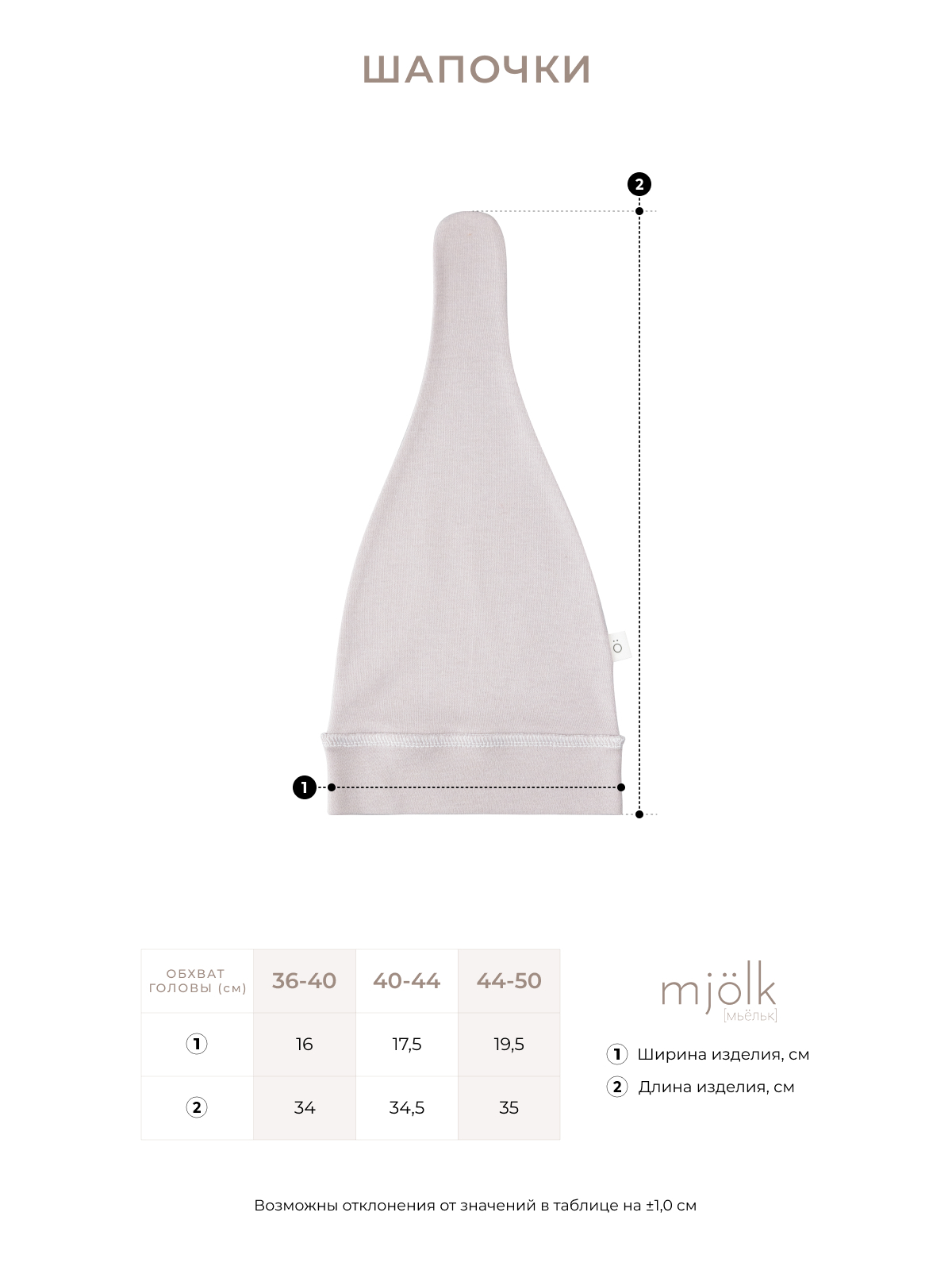 Размеры шапочек по обхвату головы малыша: