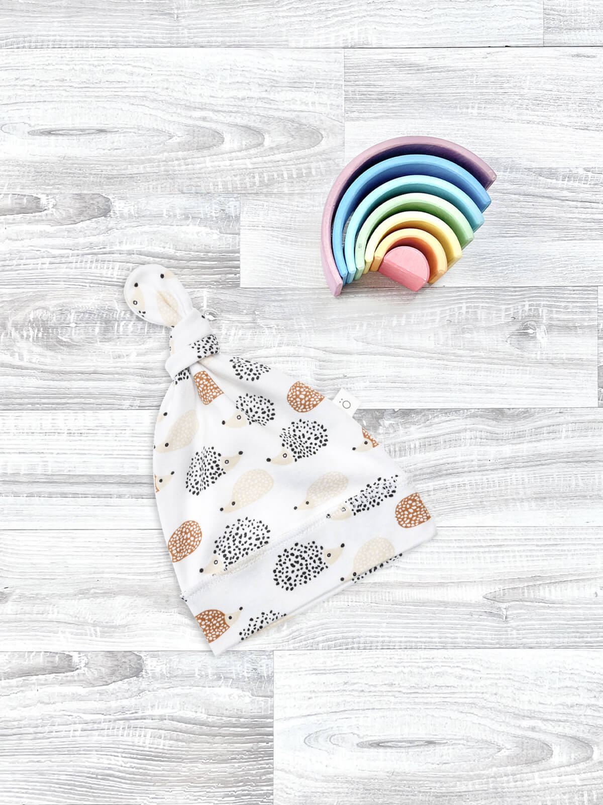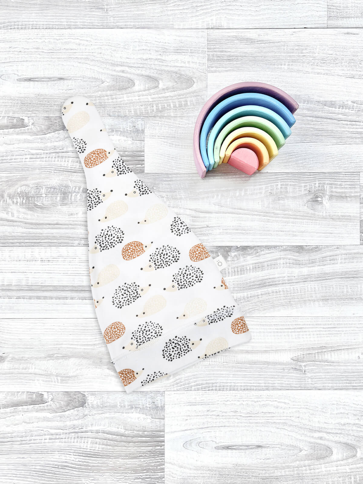 Шапочка с узелком Mjölk Ёжики выполнена из нежного трикотажного 100% хлопка. Материал эластичный, не вызывает аллергии, дарит ребёнку уют и комфорт, а милый принт придаёт малышу нарядный и нежный образ.