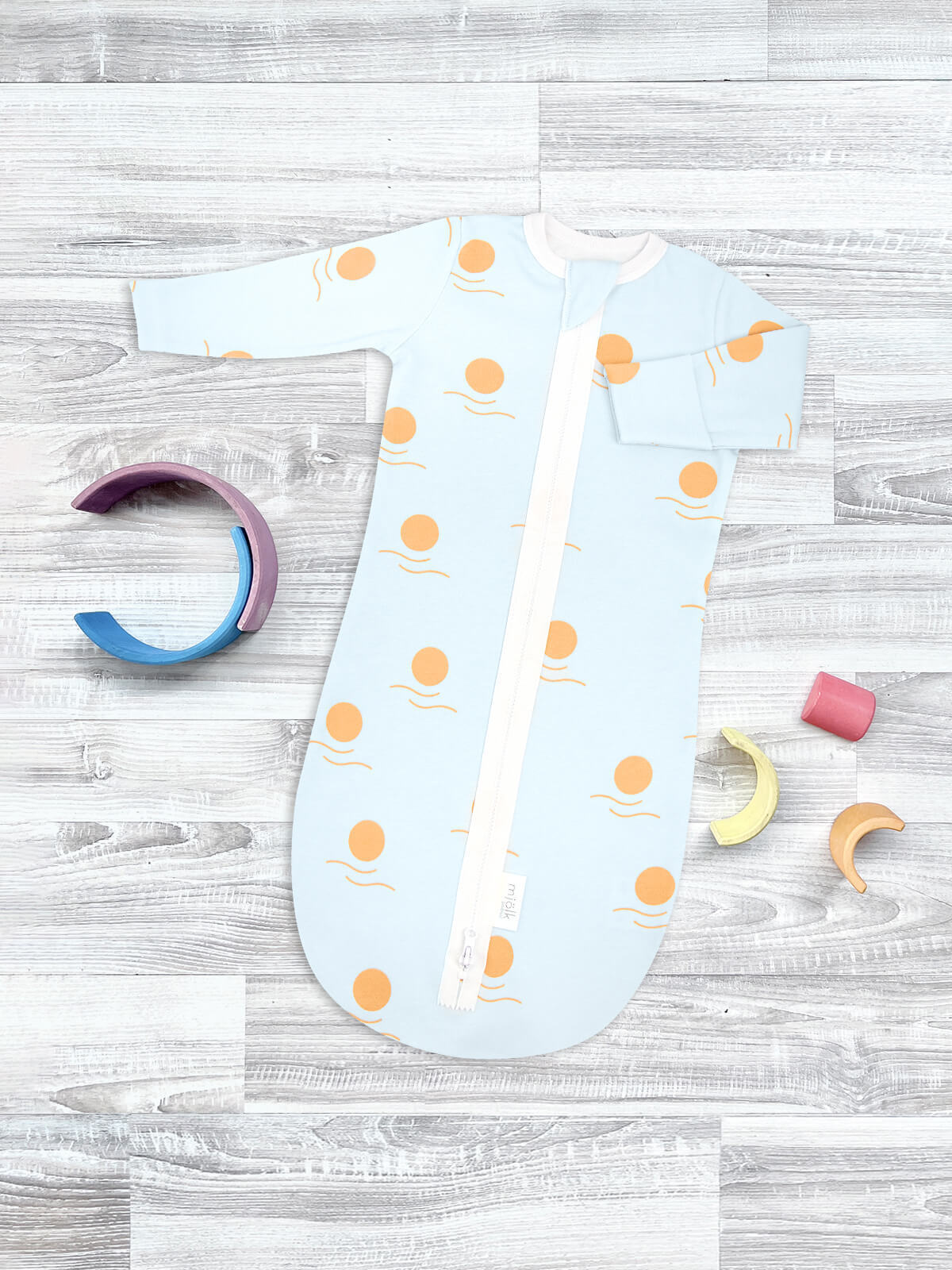 Спальный мешок для малыша — идеальная альтернатива одеялу. Он не сковывает движений новорожденного и не даёт ему раскрыться во сне. Вы легко поменяете подгузник, просто расстегнув молнию снизу вверх.