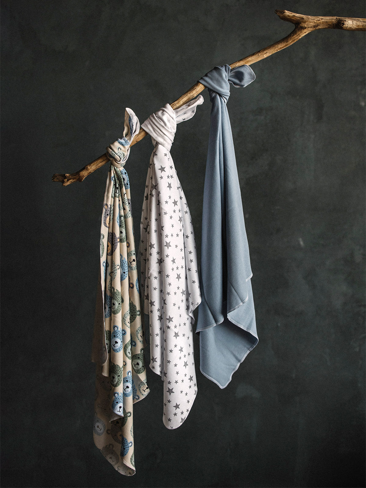 Сет из 3х пелёнок Mjölk Grizzly Bears/Blue Shadow/Звёзды
