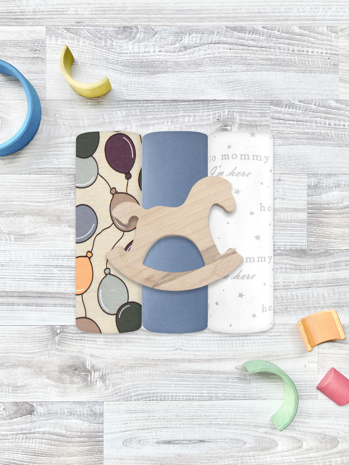 Сет из 3х пелёнок Mjölk Шарики/Blue Shadow/Hello Mommy