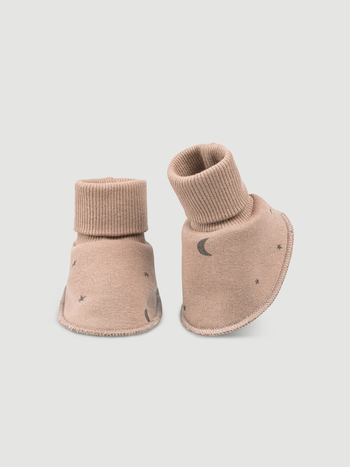 Утеплённые пинетки Mjölk [мьёльк] Camel Moons пригодятся ребёнку с самого рождения и примерно до 3х месяцев. Ботиночки полностью мягкие, выполнены из утеплённого трикотажа. Широкая эластичная резинка бережно облегает ножку, не оставляет следов и надёжно удерживает пинетки даже на самом активном малыше. Просторная модель носочка не сковывает движения пальчиков, а натуральный хлопок безопасен для самых маленьких.