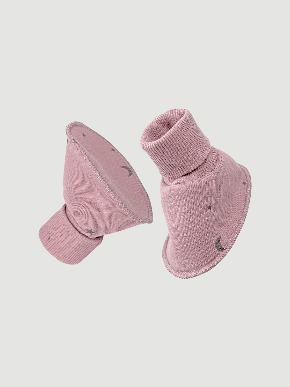 Утеплённые пинетки Mjölk [мьёльк] Desert Rose Moons пригодятся ребёнку с самого рождения и примерно до 3х месяцев. Ботиночки полностью мягкие, выполнены из утеплённого трикотажа. Широкая эластичная резинка бережно облегает ножку, не оставляет следов и надёжно удерживает пинетки даже на самом активном малыше. Просторная модель носочка не сковывает движения пальчиков, а натуральный хлопок безопасен для самых маленьких.