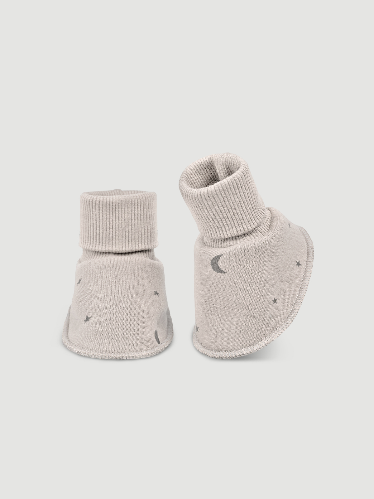 Утеплённые пинетки Mjölk [мьёльк] White Sand Moons пригодятся ребёнку с самого рождения и примерно до 3х месяцев. Ботиночки полностью мягкие, выполнены из утеплённого трикотажа. Широкая эластичная резинка бережно облегает ножку, не оставляет следов и надёжно удерживает пинетки даже на самом активном малыше. Просторная модель носочка не сковывает движения пальчиков, а натуральный хлопок безопасен для самых маленьких.