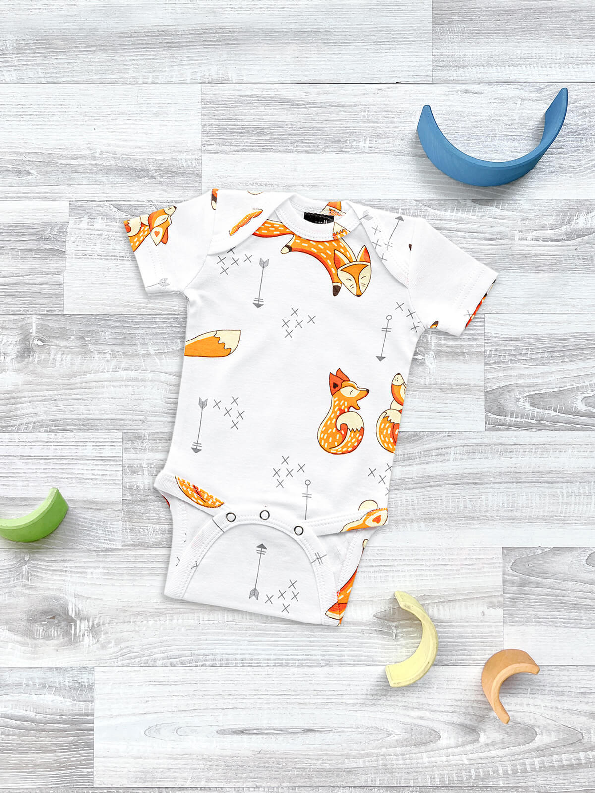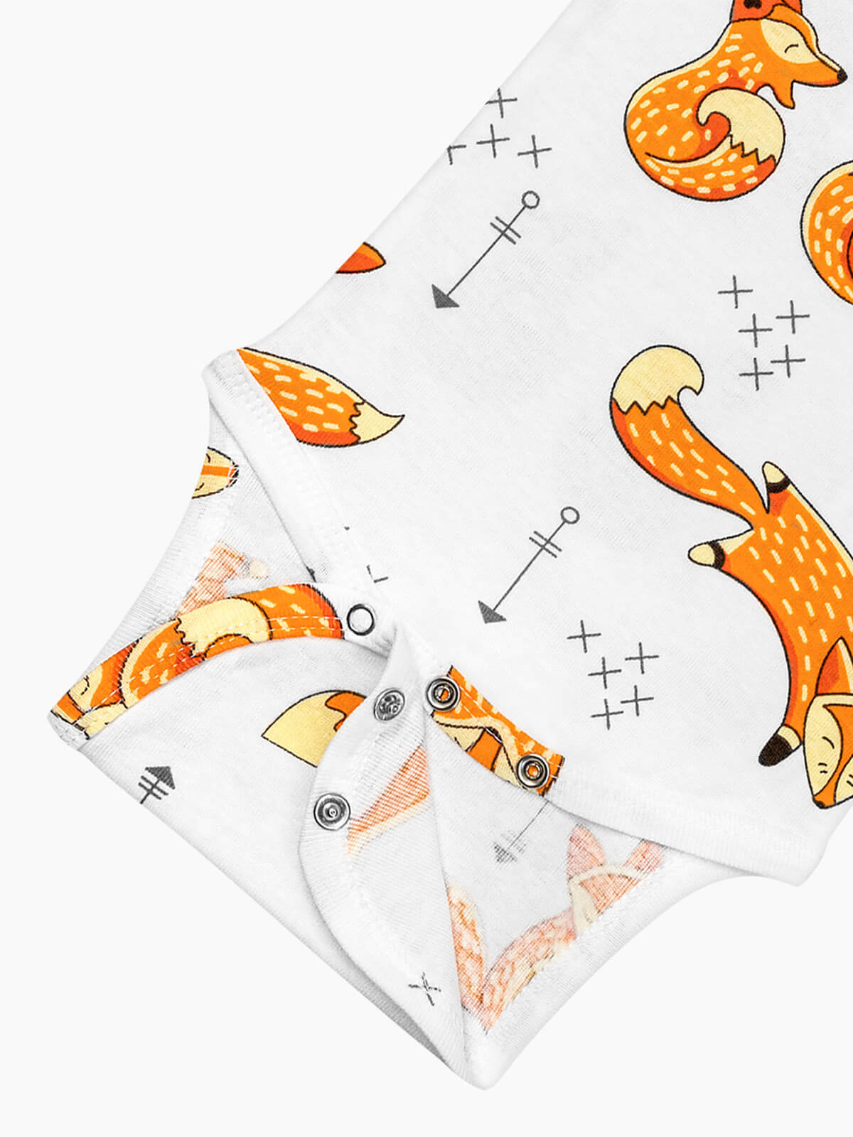 Боди Mjölk Лисички с коротким рукавом выполнен из тонкого 100% трикотажного хлопка. Плетение нитей в этой ткани менее плотное, чем у другой одежды из нашей коллекции, что позволяет комфортно использовать боди в качестве первого слоя. Материал приятный на ощупь, эластичный, гигроскопичный, "дышит" и не вызывает аллергии. Кнопки расположены значительно выше их привычного месторасположения, что облегчает застёгивание изделия на малыше.