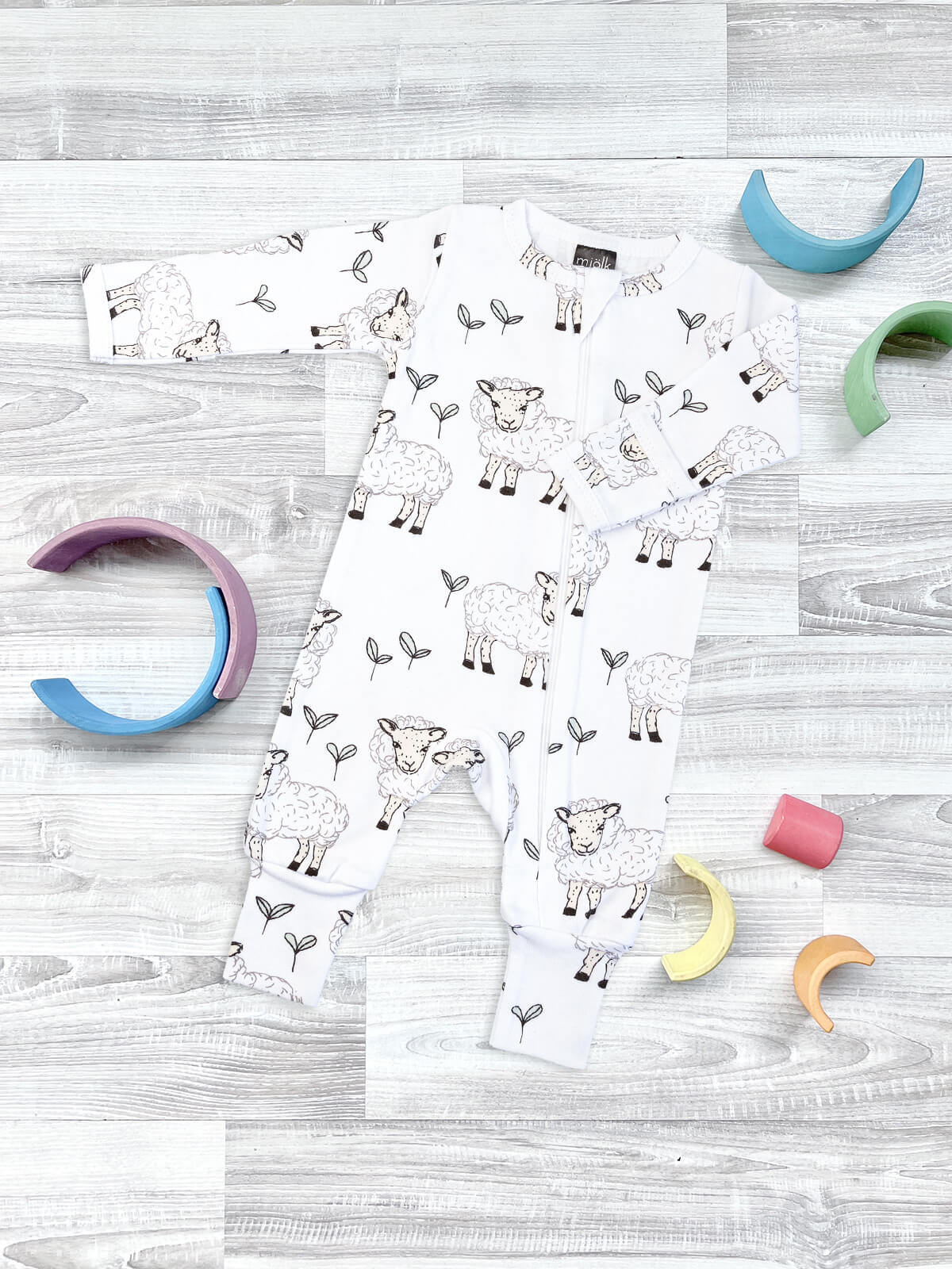 Комбинезон Mjölk Sleep and Play Овечки выполнен в нежной и нарядной расцветке: на белом фоне расположились изображения милых пушистых овечек. Комбинезон подойдёт как мальчикам, так и девочкам, а шапочку в тон можно подобрать в разделе Шапочки.