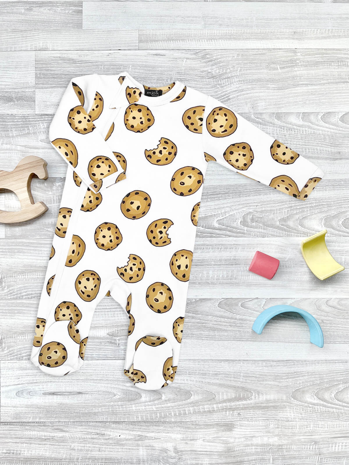 Комбинезон Mjölk Sleep and Play Печенье выполнен в яркой и милой расцветке: на белом фоне расположился рисунок из аппетитного печенья с шоколадной крошкой. Принт подойдёт мальчикам и девочкам, подарит нарядный и запоминающийся образ. Шапочку в тон можно подобрать в разделе Шапочки, а также в сопутствующих товарах.